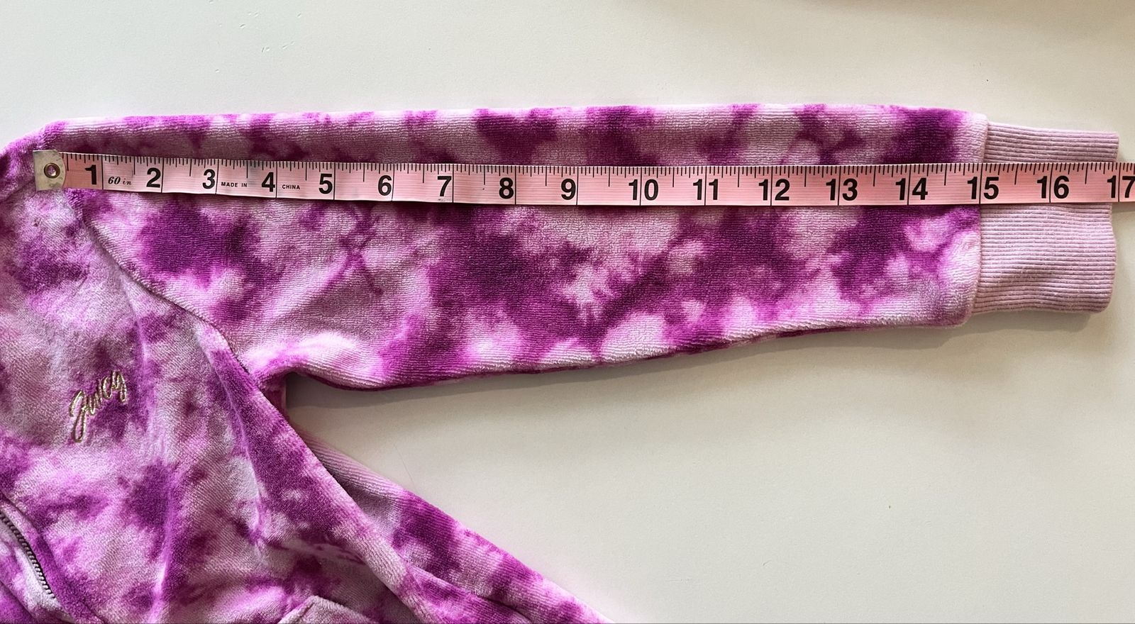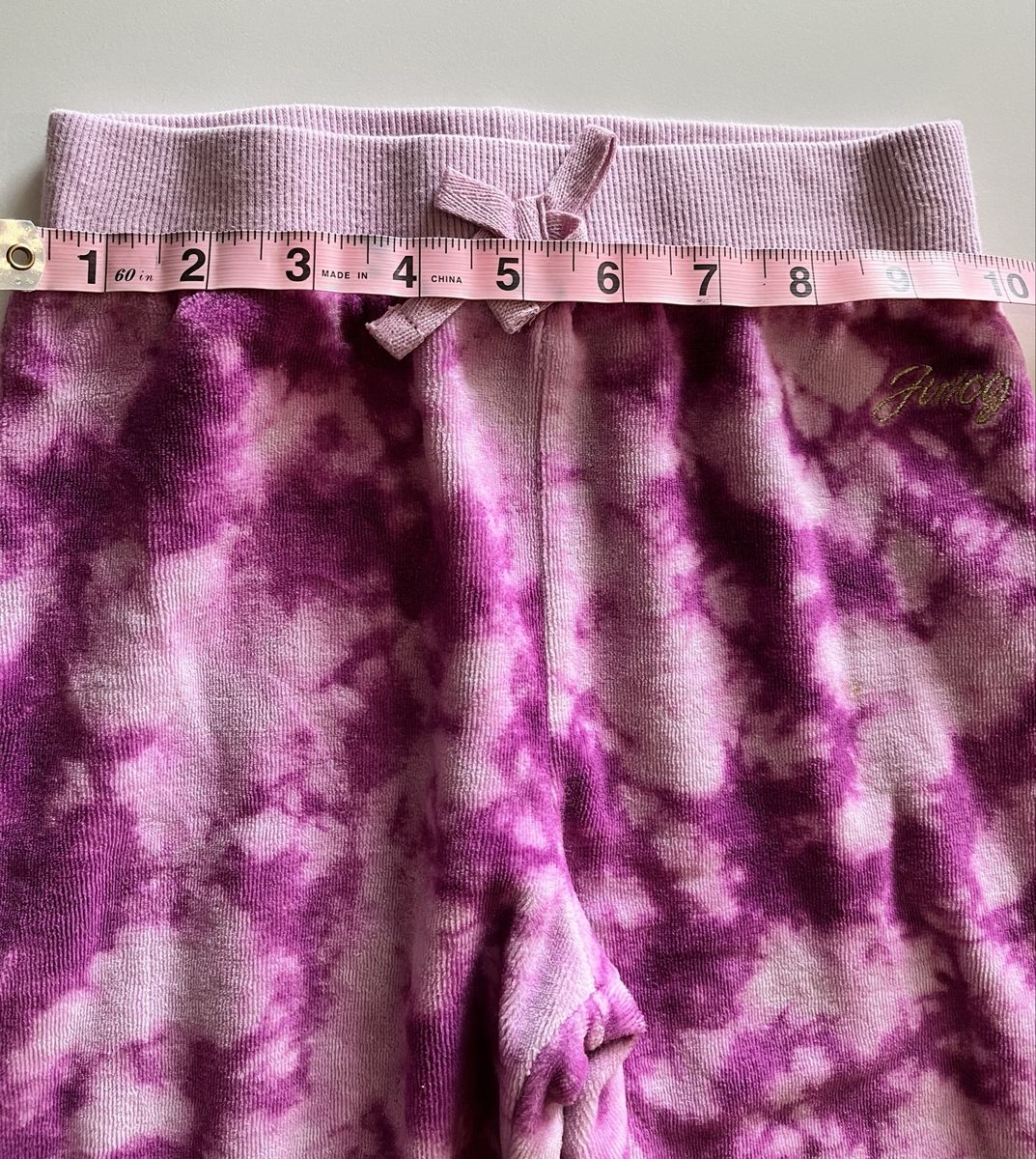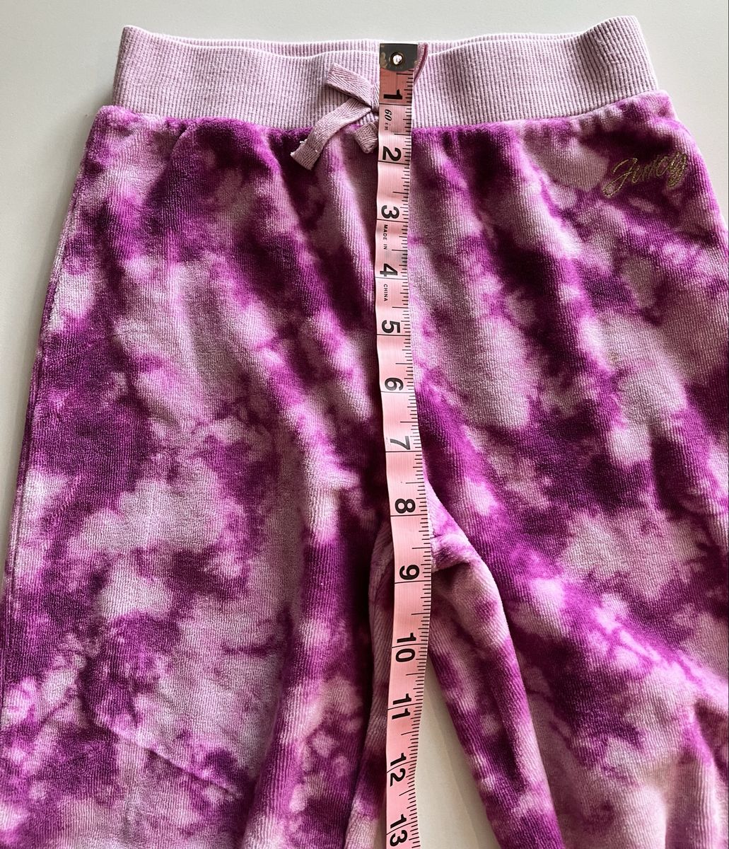 Super cute Juicy Couture hoodie + joggers set in pink/purple tie‑dye. Size 6. Excellent condition — no flaws. Soft, comfy, and perfect for school or play. See photos for measurements