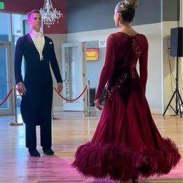 ZelleSelling my daughter’s beautiful standard ballroom gown. This dress was originally $4000, made by JoeySantosDesigns. It’s a timeless and chic red, adorned with crystals, ostrich feathers, and velvet. My daughter is 5ft 5 in, 130 pounds, and wears a size 6-8. This dress was a little loose around her torso. It was worn to nationals & junior olympics. Taken very good care of. Perfect for upcoming holiday performances! Key words: Costume, ballgown, dance, ballroom, competition, performance. Willing to ship.