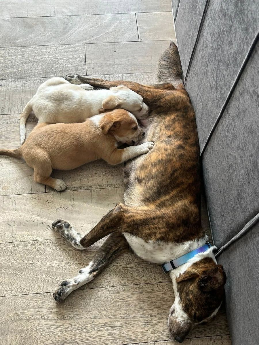 Her pups are estimated to be about 7 weeks old and will be weened soon.