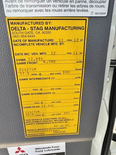 Box Truck 2012 Mitsubishi Fuso Van 14' Box Diesel with Lift Gate