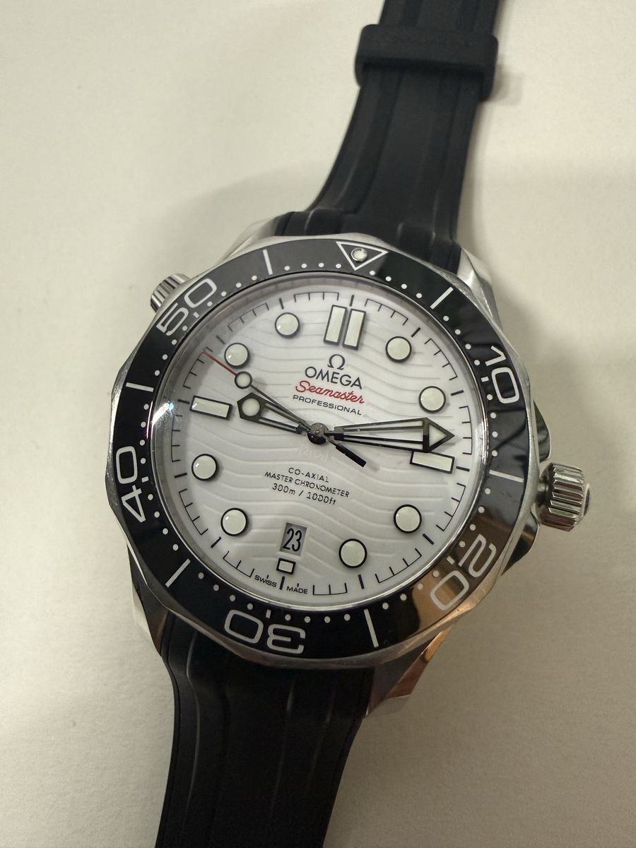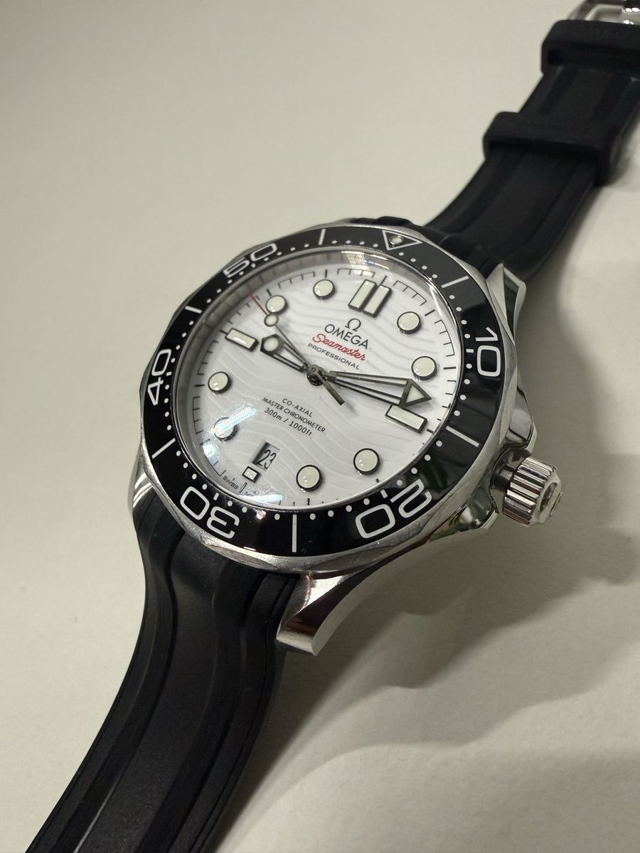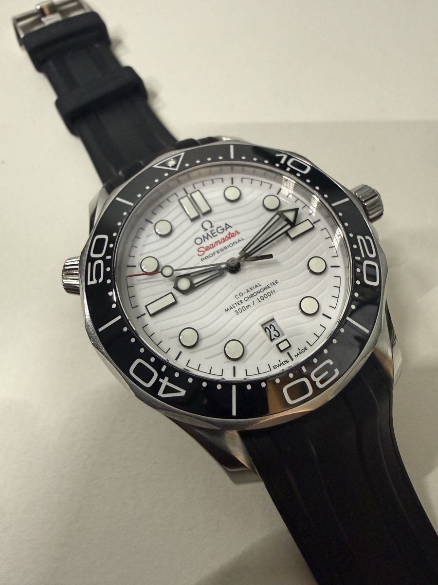 Selling a white dial SMP 300 on the OEM black rubber strap. Based on the 83.3M serial number, this is a later production unit from roughly 2021-2022.