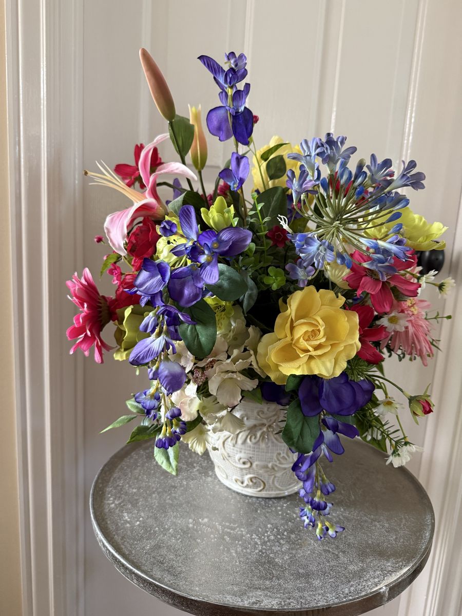 Table 25.5 T 16.5 W Fake flowers and pot 20” tall