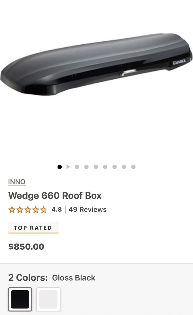 Venmo2024 Inno Wedge 660 Roof Box. Perfect condition. Garage stored. Used only in winter for skiing. Storage straps still in original bag. Have Owner’s manual.