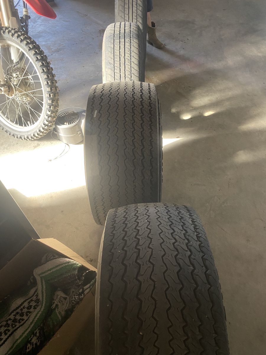 Took these off our d100 dodge. Tires hold air will need to be replaced. Wheels clean up nice. $150 thanks