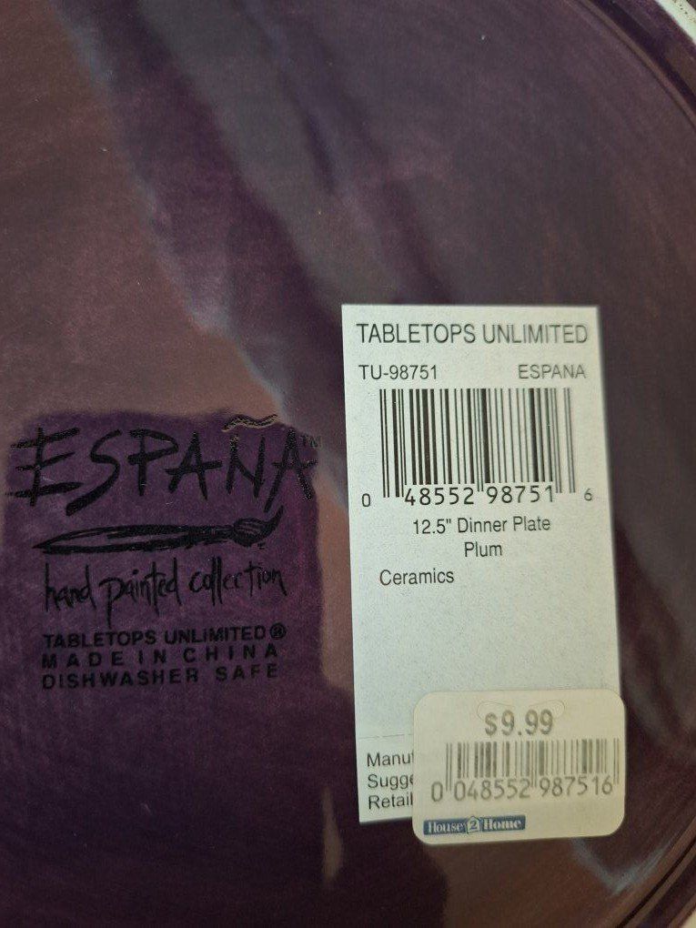 VenmoEarthwear Espana Tabletops Unlimited collection. Many have never been used. Originally cost much more than asking price. 8 Dinner plates - 12.5" 8 Salad plates - 10.5" 8 Dessert plates - 8.5"