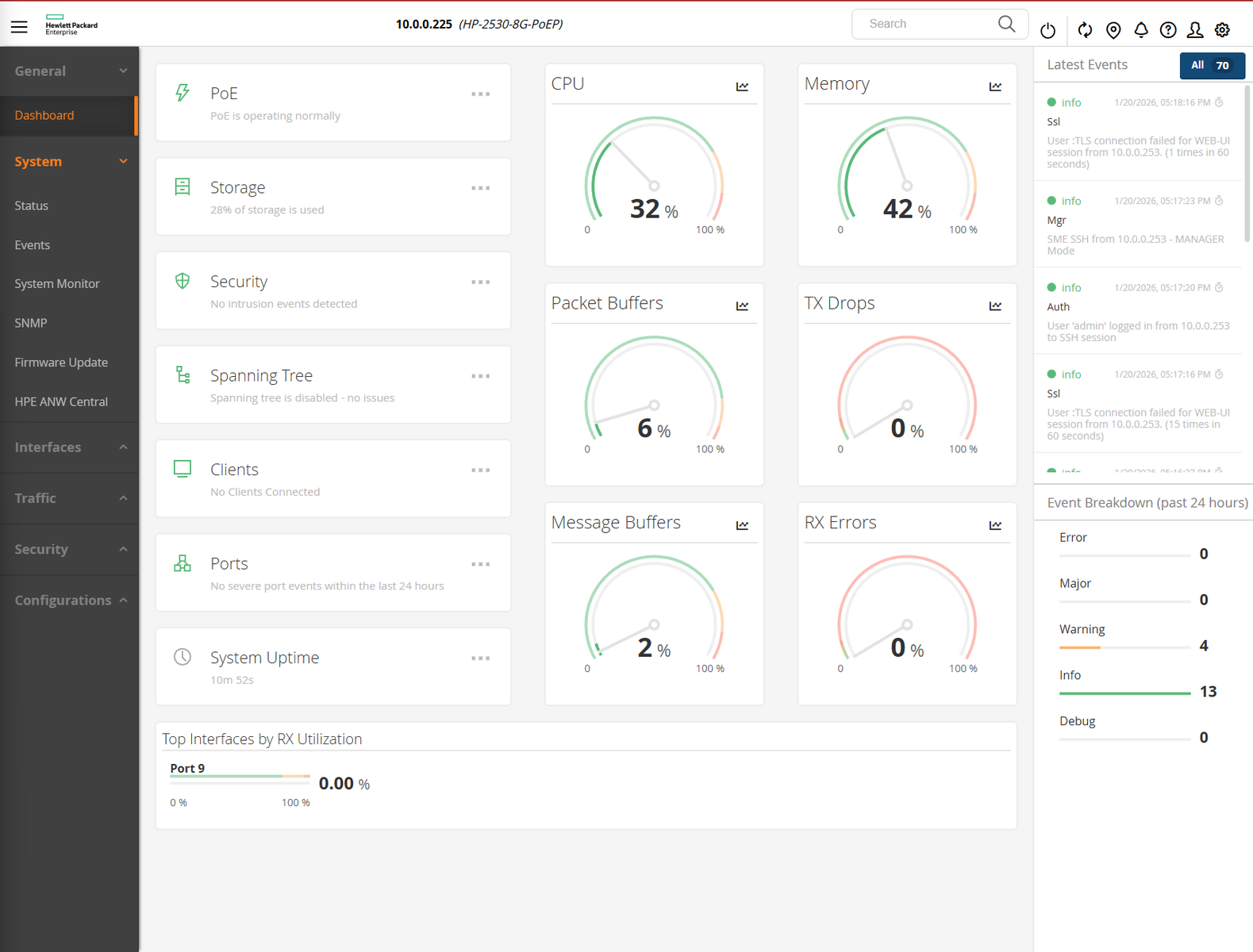 Management: Web GUI, SSH, Console via RJ-45 Serial Port, SNMP