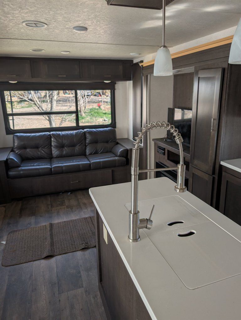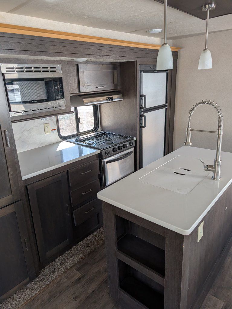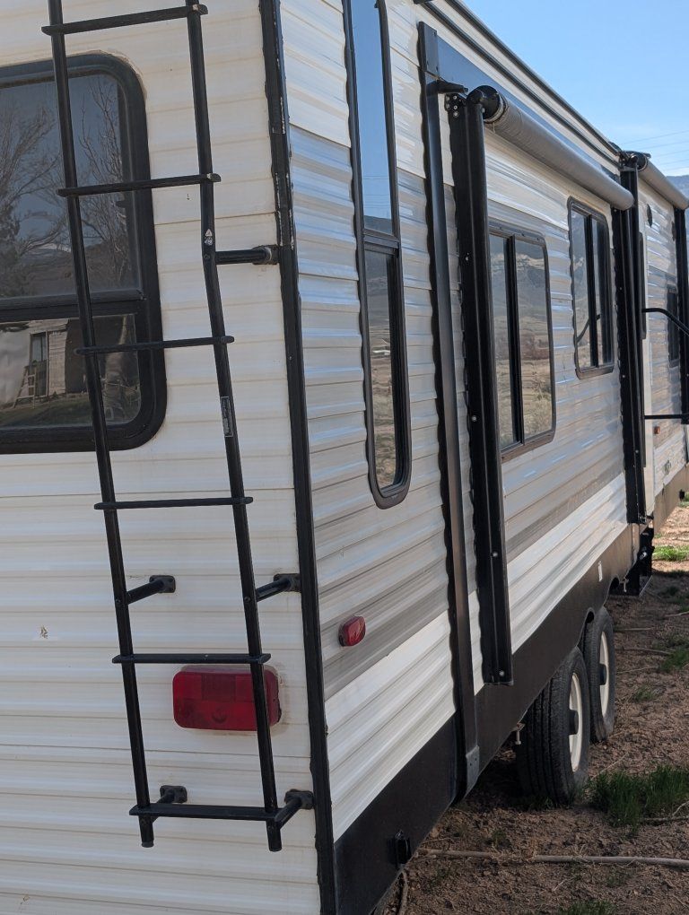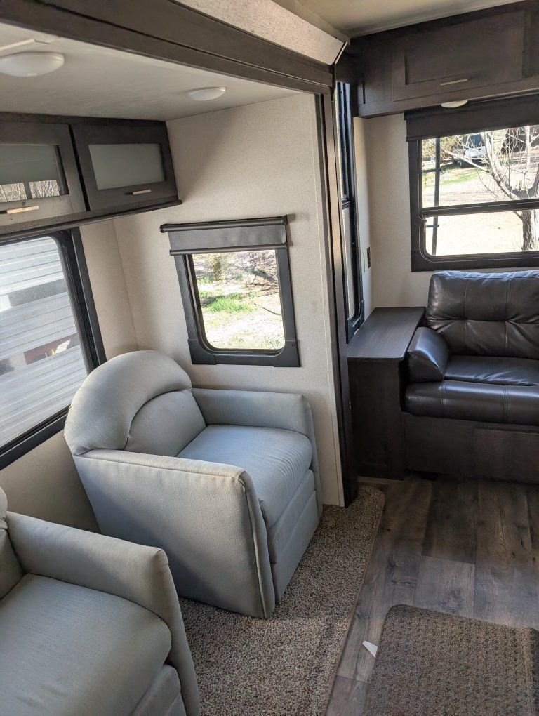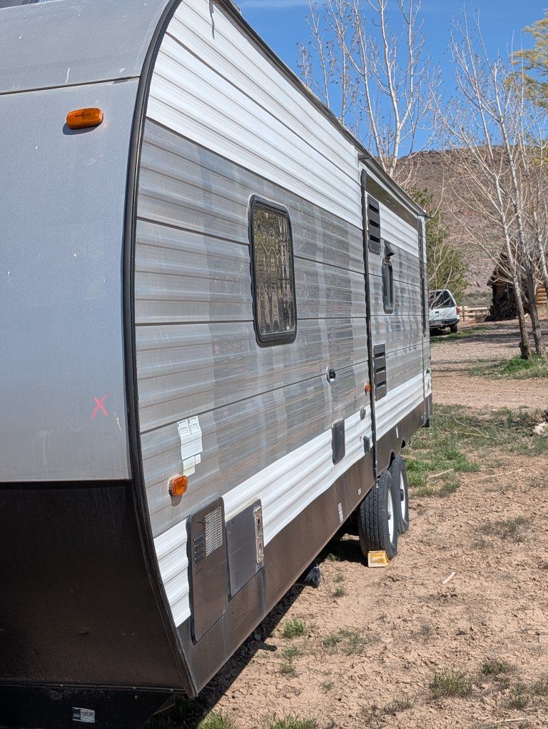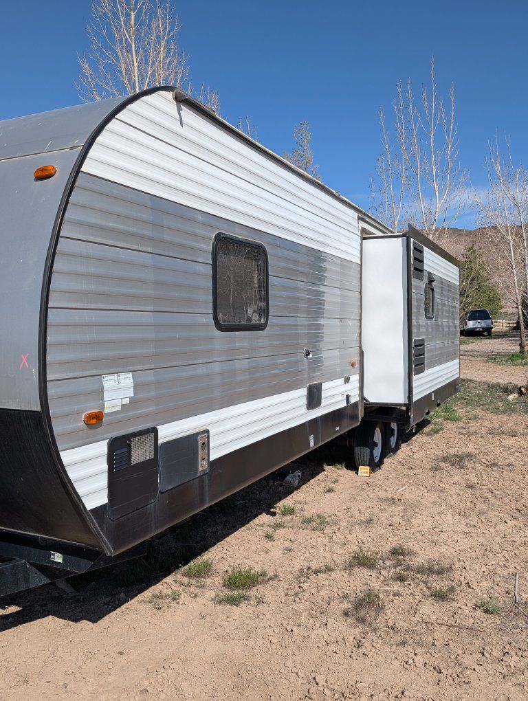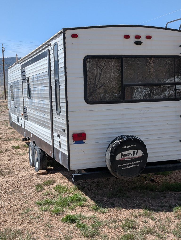 VenmoForest River 27 ft trailer two slide outs one in the kitchen. one in the living room to make a very nice kitchen living room area even with a fireplace. although it's fake, it's still provides heat and is beautiful. you'll enjoy this trailer New batteries in tires need to be replaced. still have lots of tread but they are old and if you're going to travel with it you need to replace them. talk to Dave. call 435 -289-2780