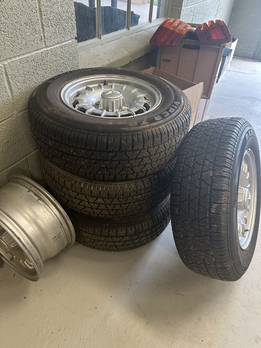 VenmoMercedes Benz 450 SL 14 inch wheels (4) with tires, one additional 14 inch rim and two cap centers. Two tail lights and unopened chrome fender trim. Set of unused hubcaps. Extra parts were for 1977 & 1978 450 SL’s. Buyer to confirm compatibility with other years and models. Package deal for $850 or OBO.