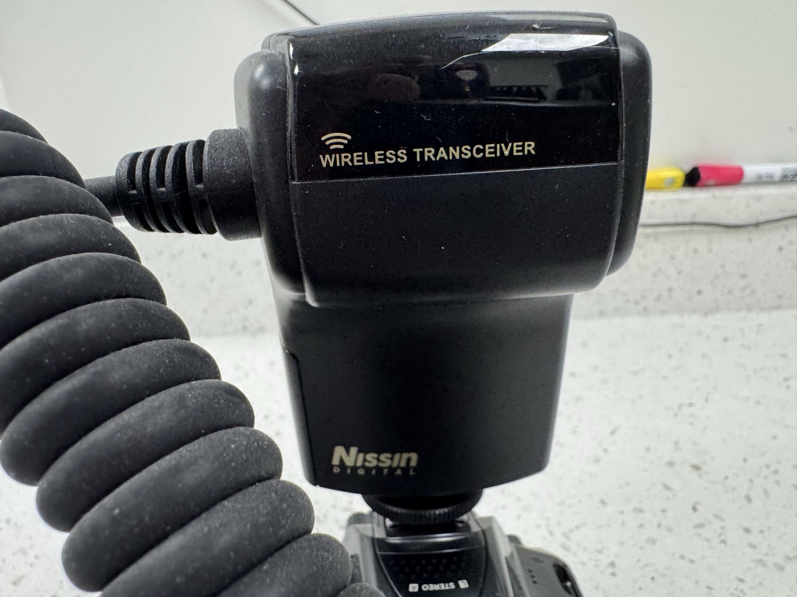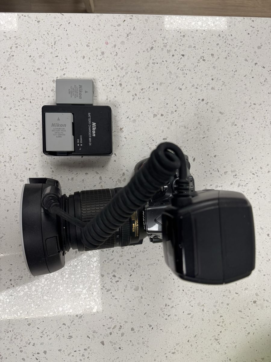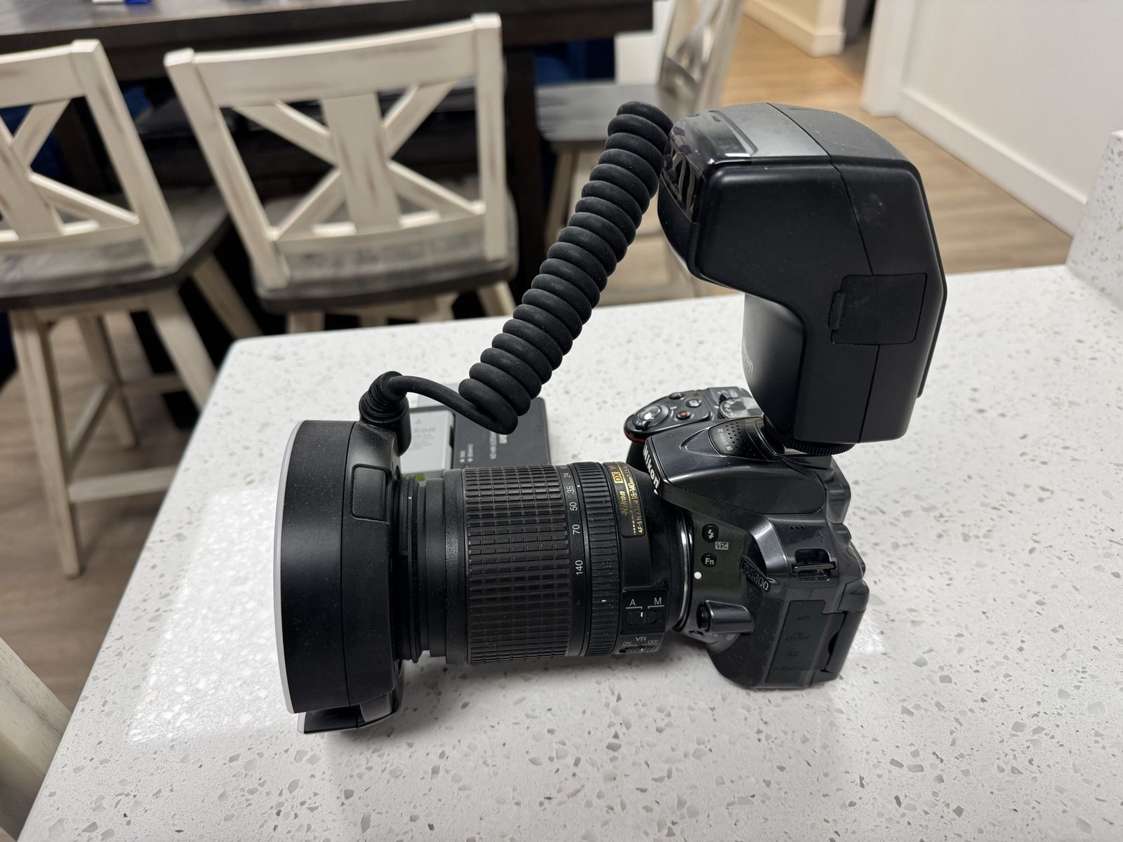 Nikon camera with Nikkor Lense and a Nissan flash ring