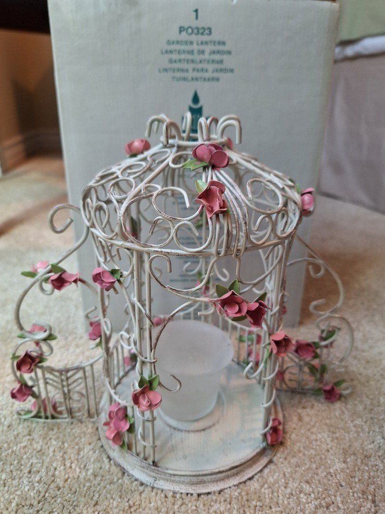 VenmoParty Lite brand. Metal lantern with roses and candle holder. Never been used.