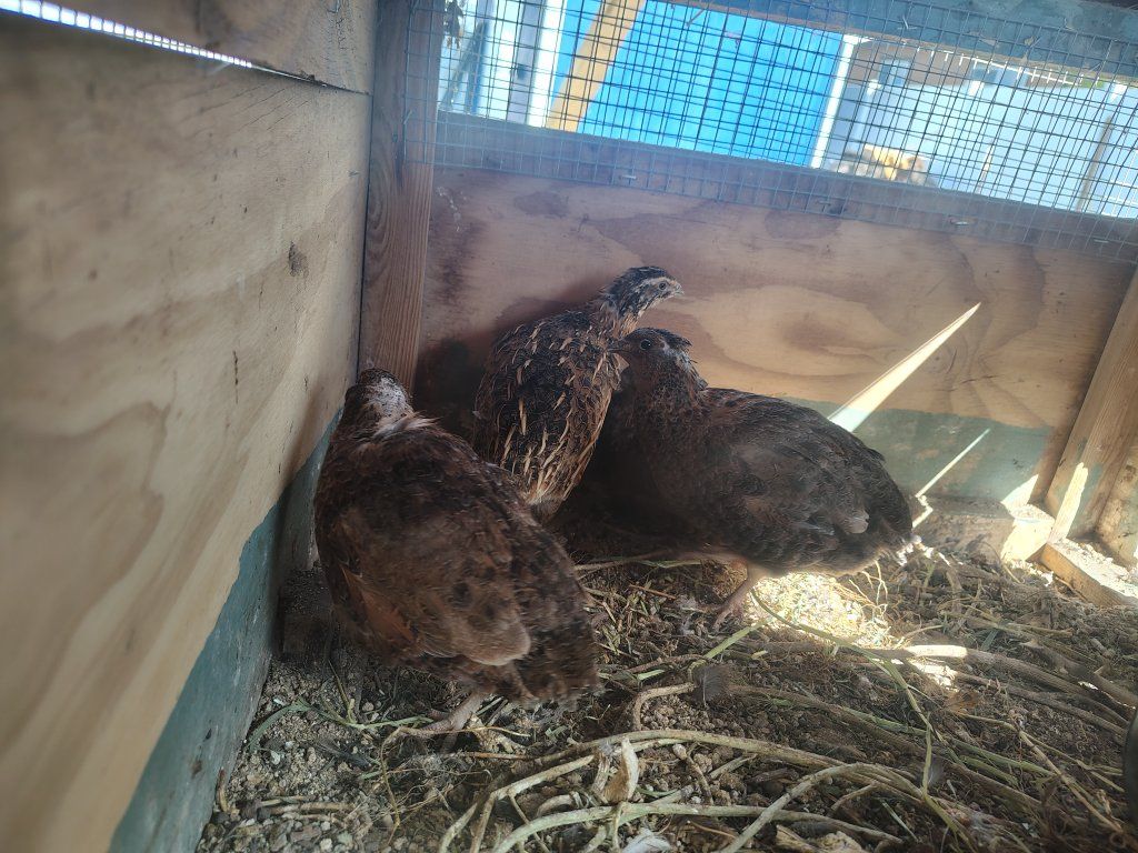 Selling my quail. They've been lots of fun, but i have space for chickens now, so these guys are going. 9 hens and 3 males. This batch is not quite a year old and were born mid summer. They're already laying this year. There's a mix of tuxedo, silver, jumbo browns. We love incubating the eggs for chicks and the eggs themselves are fantastic hard/medium boiled as snacks for kids.