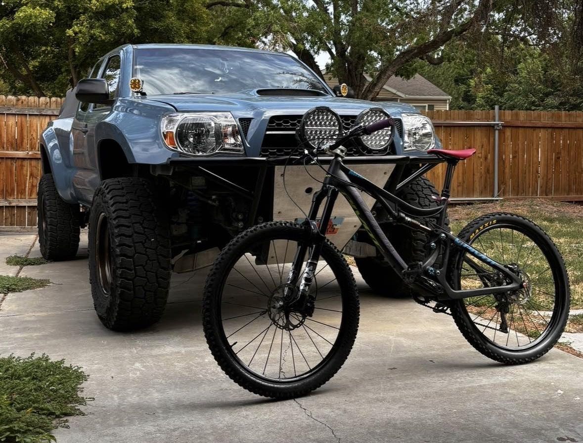 Pivot Mach 5.7 Carbon up for grabs. This is a super fun, do-it-all trail bike with 26” wheels and 145mm of travel. It’s got a stiff carbon frame, and DW-Link suspension that climbs way better than it should but still rips on the descents. Super responsive and versatile—light enough to pedal all day but capable when things get steep and technical.