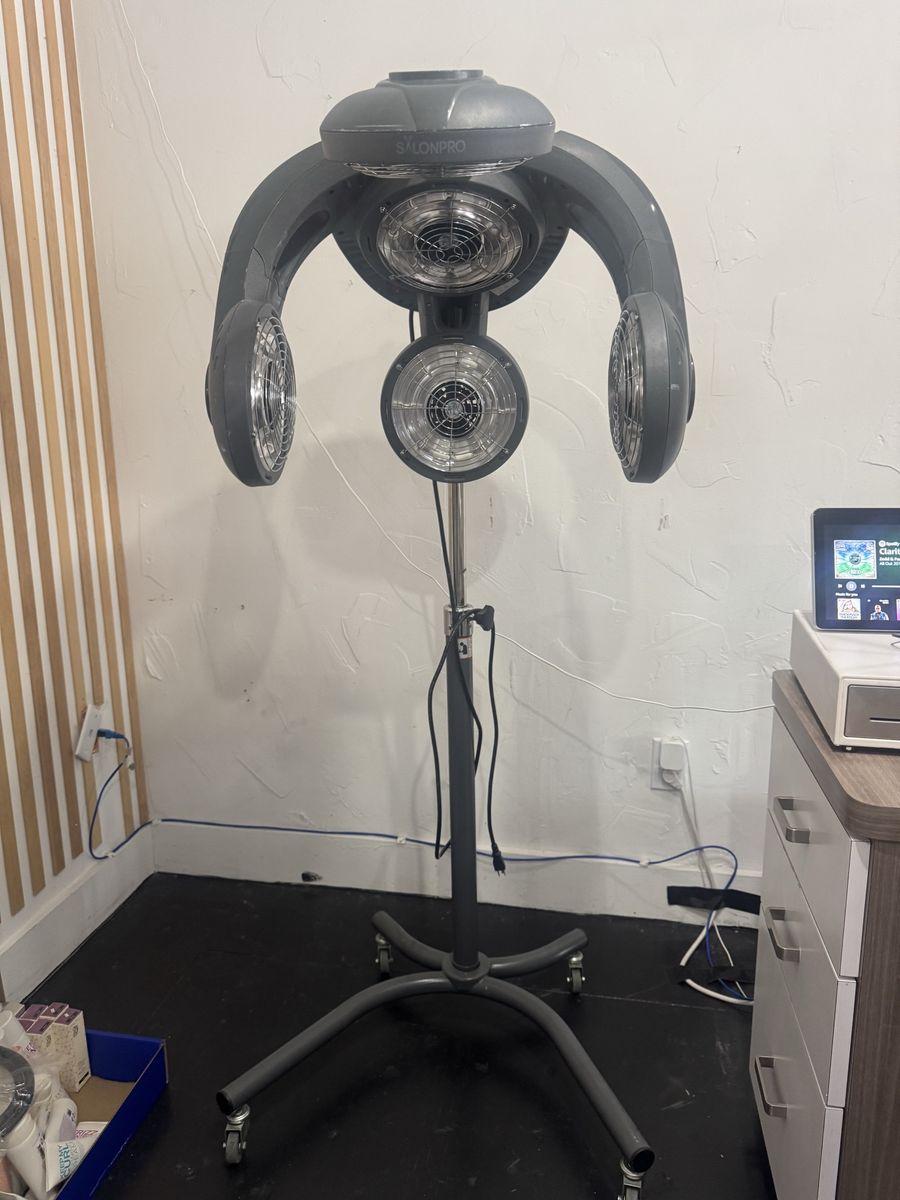 ApplePaySalonPro's Multi-Zone+ infrared multi-function hair color processor & dryer with independent zone controls for each of it's 5 infrared heaters and built-in fans in each zone. This device is used to accelerate color/chemical treatments and dry hair with maximum efficiency. Multi-Zone+ reduces the time for perm treatments, bleaching, dyeing and more, by up to 50% compared to traditional methods-for faster and better absorption. Also included with this model is the "03"O-Zone hair therapy function which can be activated with the touch of a button to help restore dry, damaged, and thinning hair - as well as prevent hair loss. PICK UP ONLY- Murray, Utah