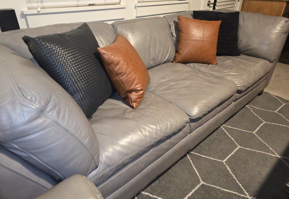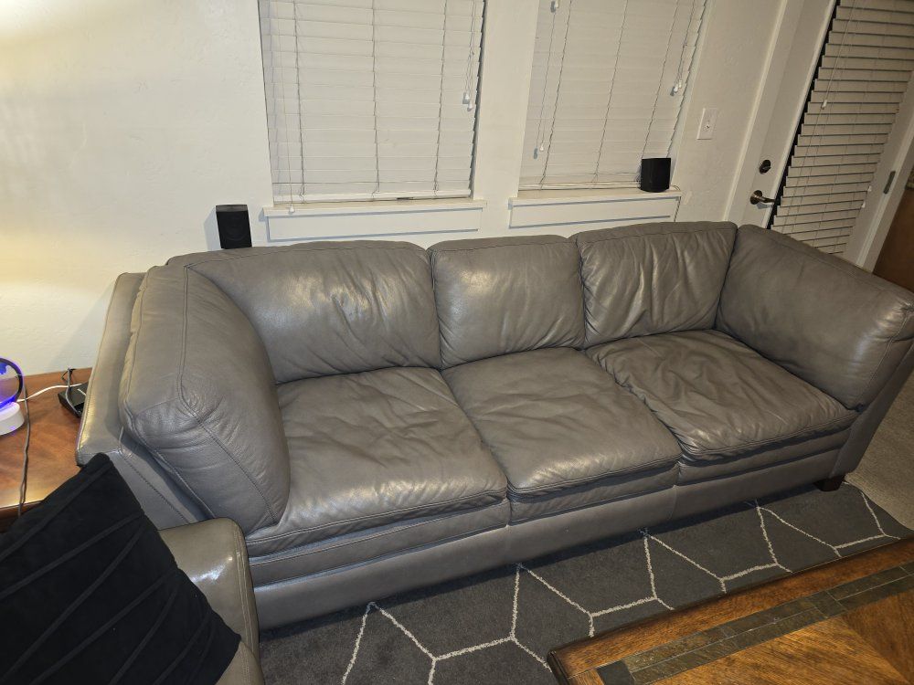 PayPalGenuine leather sofa, excellent condition, no blemishes or scratches. very comfortable, gently used. conditioned regularly. pillows not included. Purchased new sofas, wont fit in spare bedroom, sadly having to sell. priced to sell. $250 or best offer.