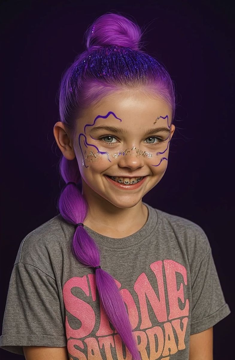 Girls Experience Includes ~ Signature Hairstyle Bubble Braid ~ Makeup + Glitter ~ Face Gems ~ Personalized KPOP DEMON HUNTER Face Pattern