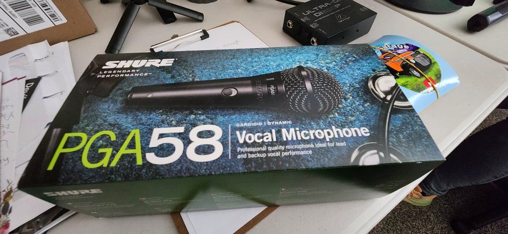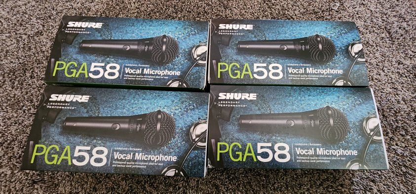 VenmoThis is a brand new, in the box, never used Shure PGA58 mic. I have 6 available, 2 of them do not have boxes. Willing to make someone a deal on all 6. See my other adds for stands, cords and other music gear. please text