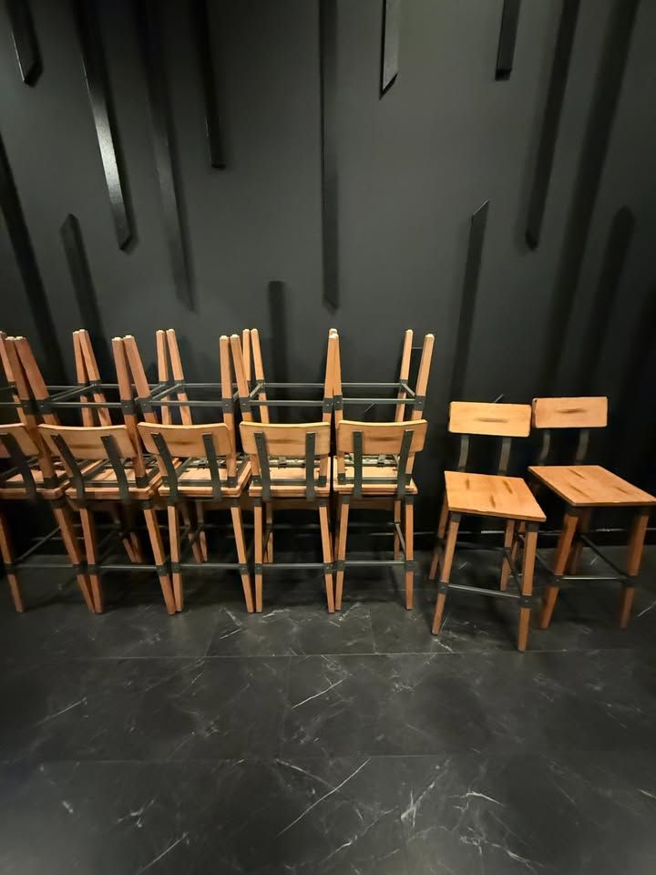 ApplePayPrice drop for immediate sale! Lancaster Table & Seating Rustic Industrial Bar Height Chairs (Honey Maple finish) – fully assembled and in very good condition, for $25 EACH. (Retails for $119 ea.)