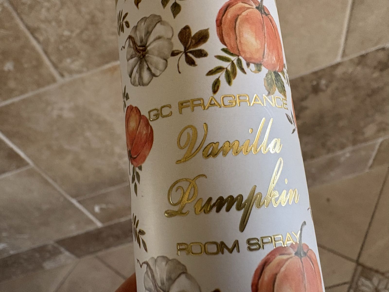 I have a metal can of GC Fragrance room spray. The scent is vanilla pumpkin. It’s 6.34 fl. oz. There is a small dent in the can. See my other ads for jewelry, artwork, home decor and more.