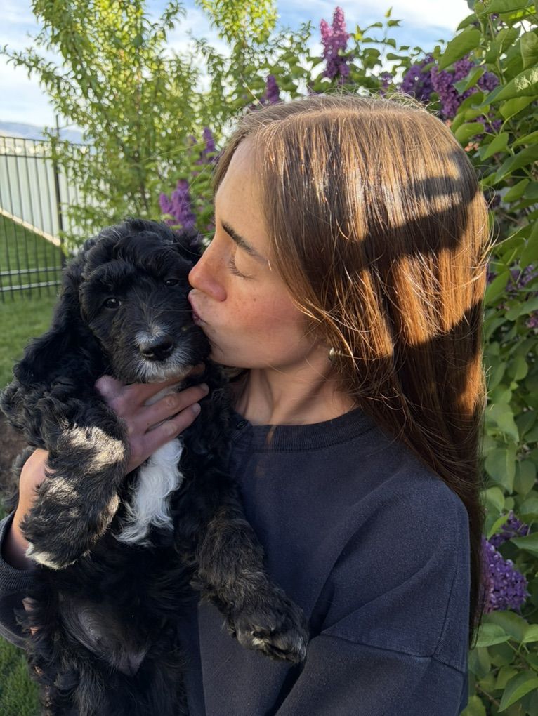 We have one puppy left from our litter! I can’t believe Licorice is still available. (FEMALE)