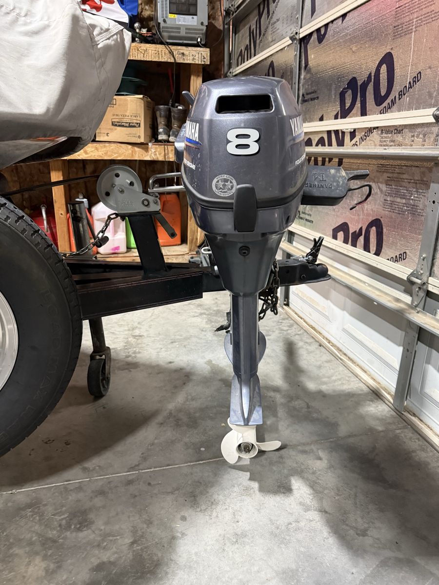 This Yamaha 8HP trolling motor is like brand new , It has very low hours. I’d be very surprised if it has more than five hours… it has the panther T4 remote control steering and throttle controller so you can run it with a remote from the front of the boat! It also comes with a $700 panther mounting bracket and plastic puck plate! I would be interested in trading for 8x6.5 wheels and tire tires, electric trolling motors, flatbed trailers, shotguns, rifles , 110 dirt bikes, pistols, old trucks, just let me know what you have