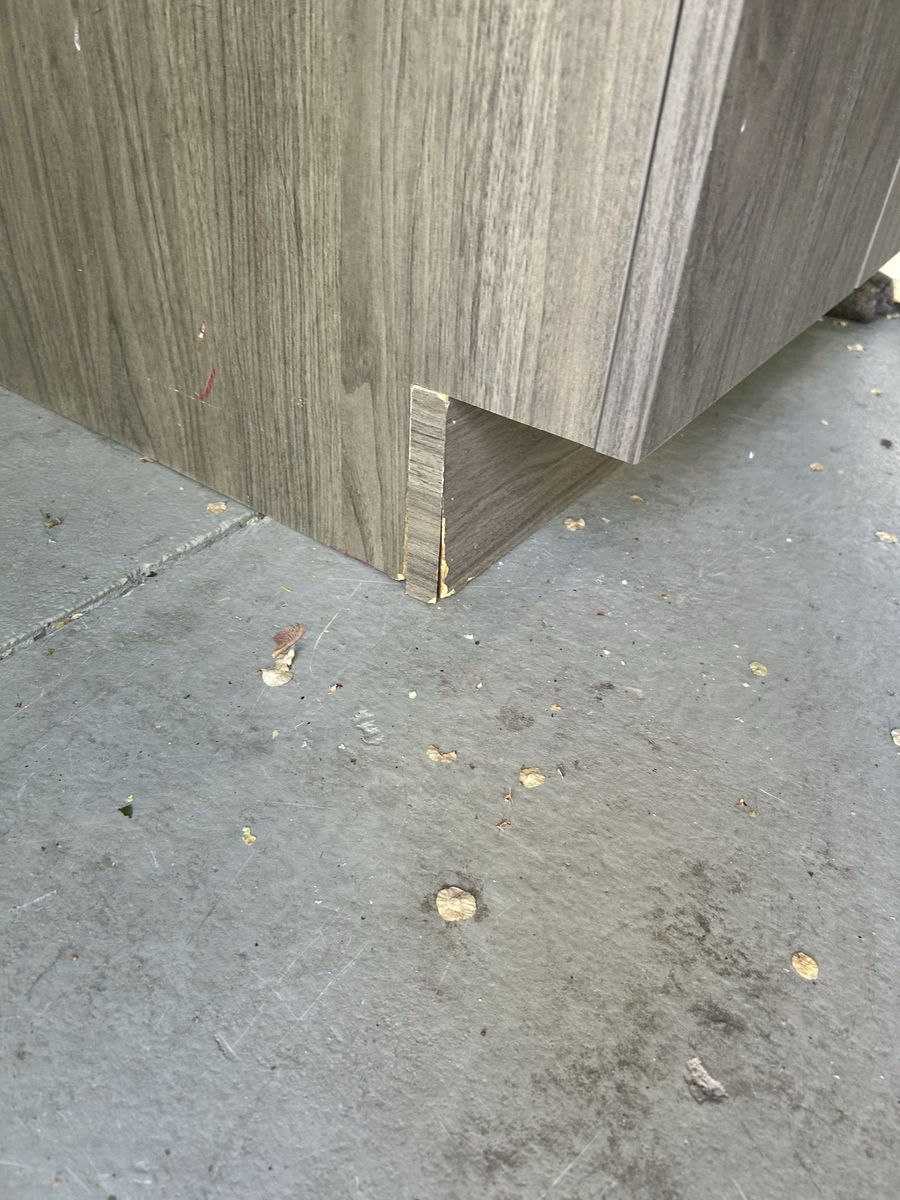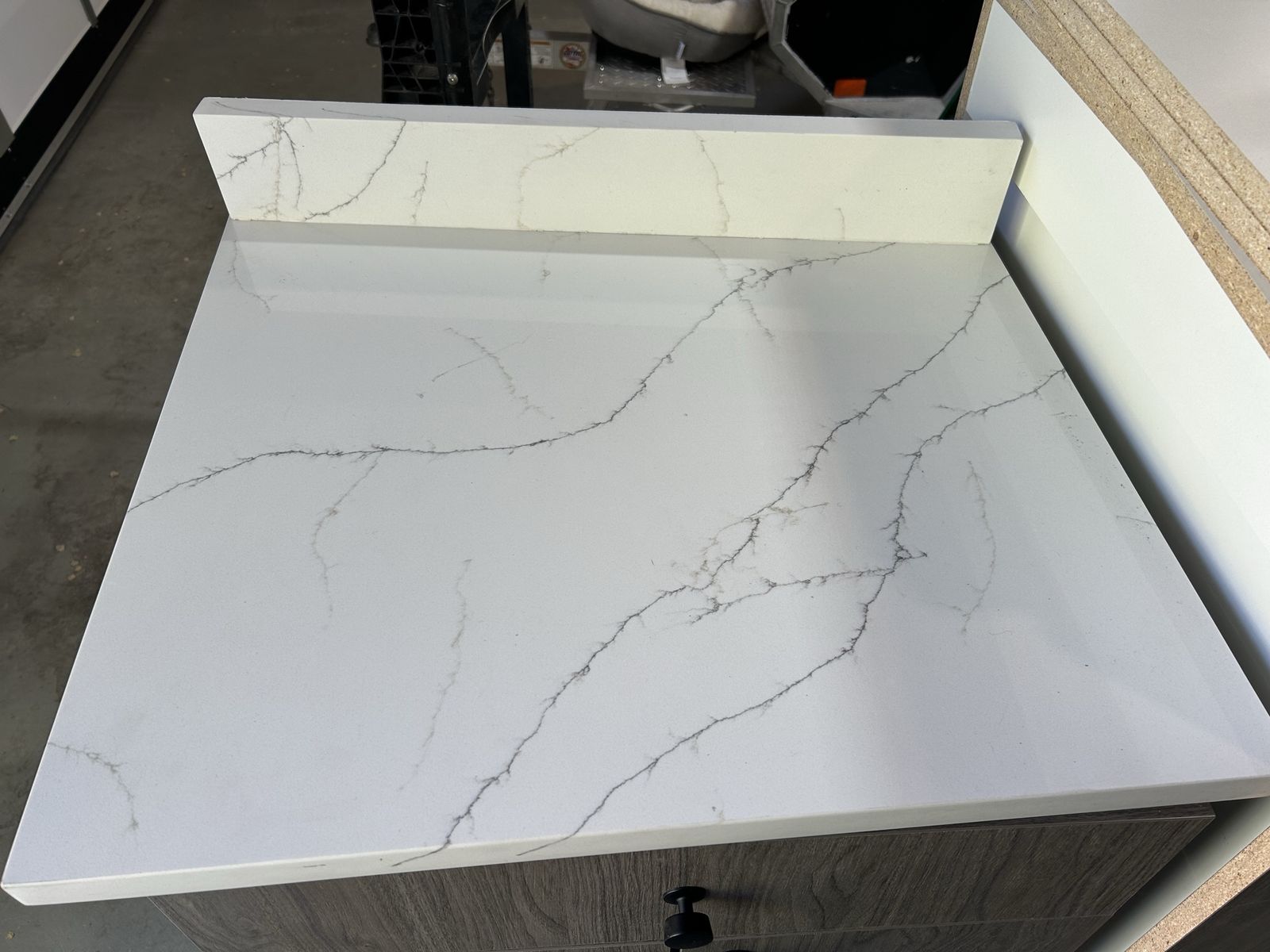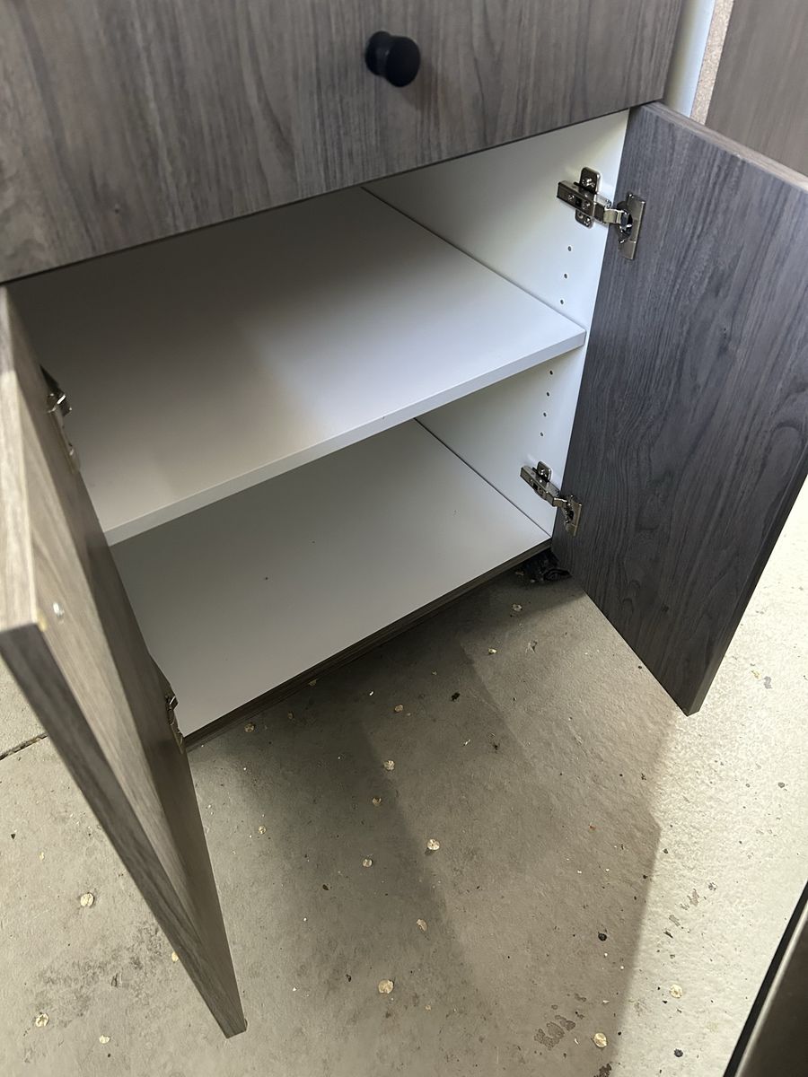 VenmoBrand new 42”h wall cabinet and used base cabinet. Decided to replace an existing base cabinet with a new floor to ceiling cabinet (after ordering matching wall cabinet, with no cancellation option). Base has some damage at toekick from removal process, otherwise everything is in excellent condition. Melamine interior and shelving, soft close doors and drawer, countertop and backsplash strip are white quartz with grey and tan veining. Cabinet finish is Wilsonart Monteverdi, including sides. This set cost minimum $1200 purchased new (not including install). Width dimensions (other dimensions standard): Base 24” Countertop 27” Wall 27” $250 or best offer