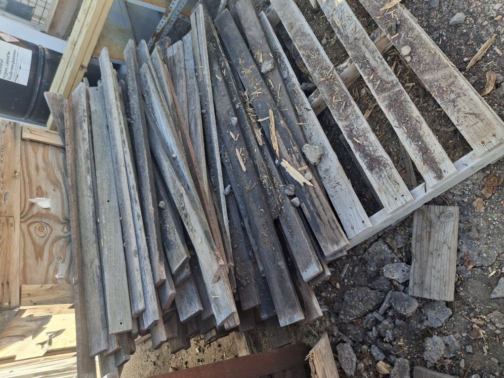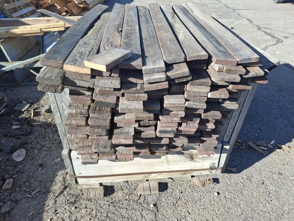 used hardwood slats. I think there oak. Not sure sure. there 3.5 wide and from 53.5 to 55 inches long. .50 cents each. You pick up. I have about 300 of them.