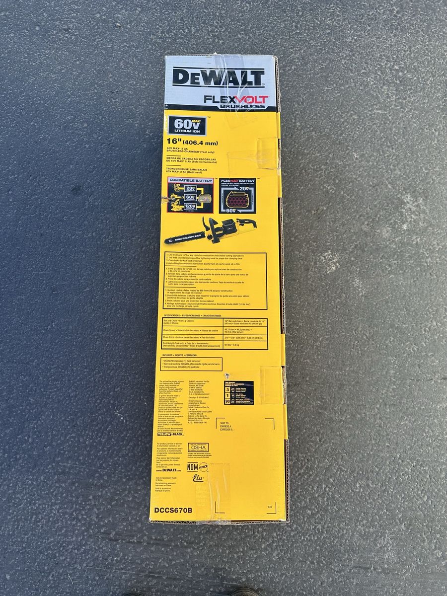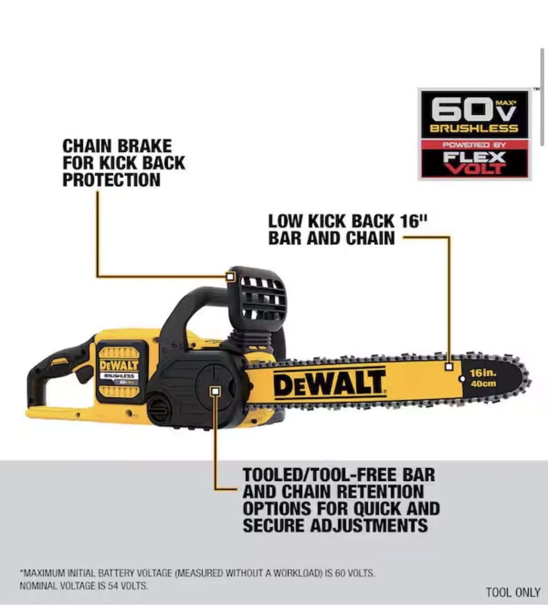 ZelleDEWALT FLEXVOLT 60V MAX 16in. Brushless Cordless Battery Powered Chainsaw (Tool Only)