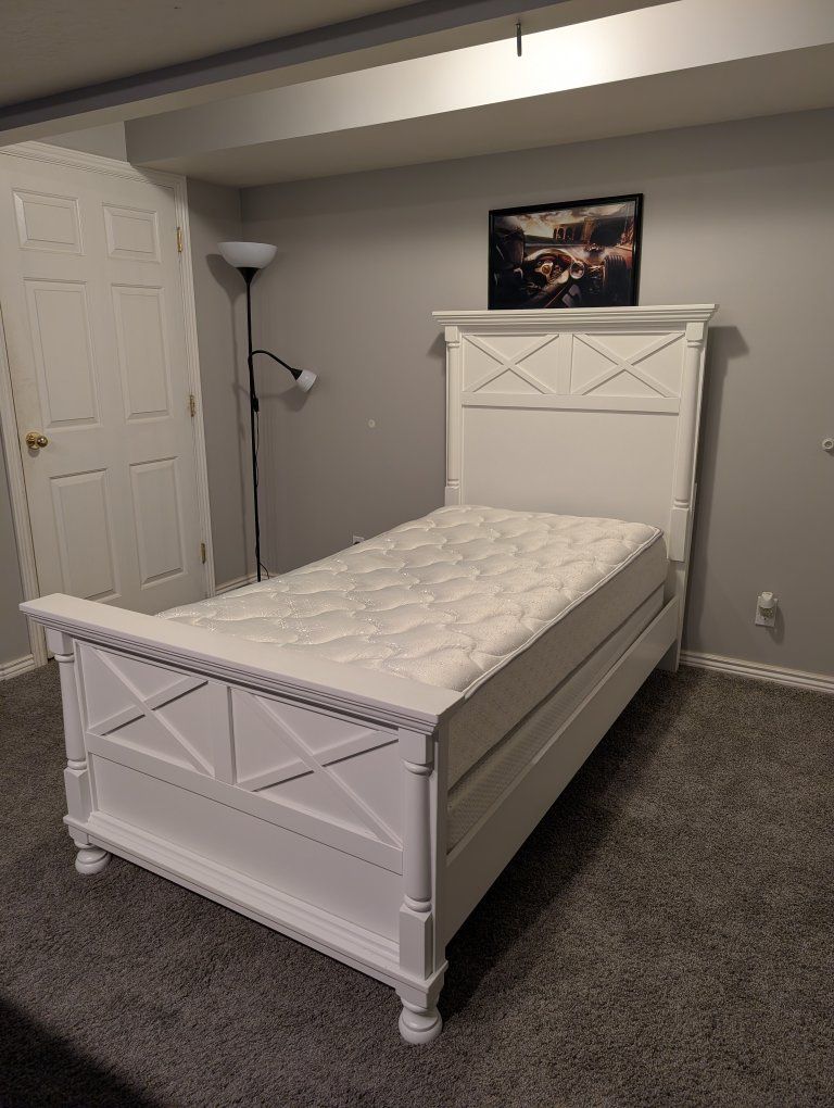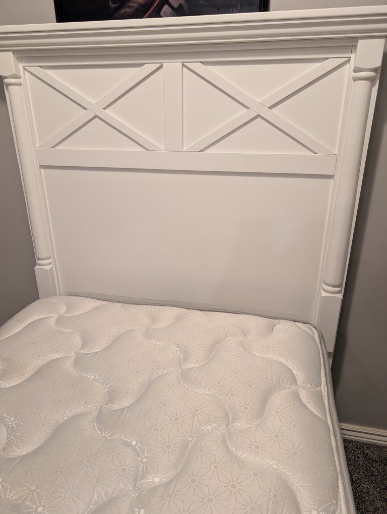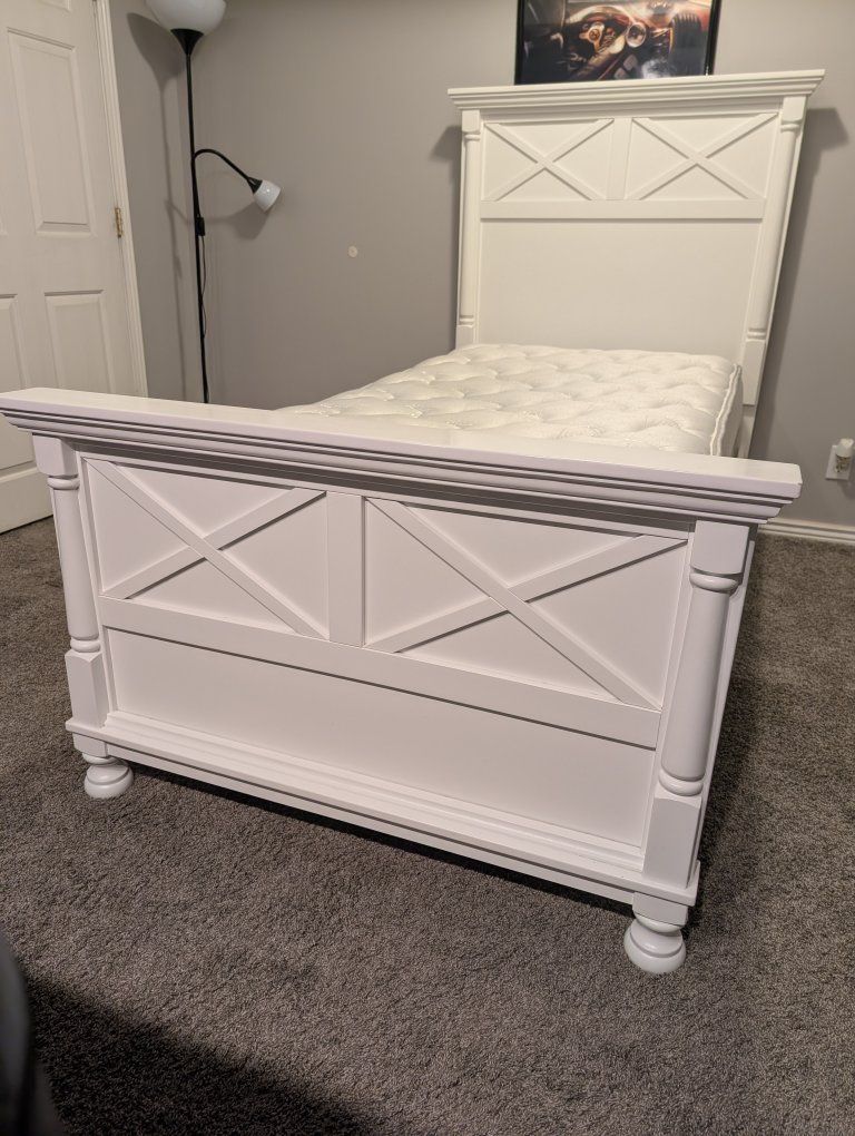 VenmoTwin bed with mattress and box spring.