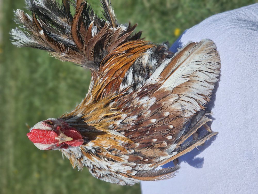 PayPalCalico/Mille Kikiriki Cockerel Toppy Standard Hatched January of this year NPIP/AI CERTIFIED