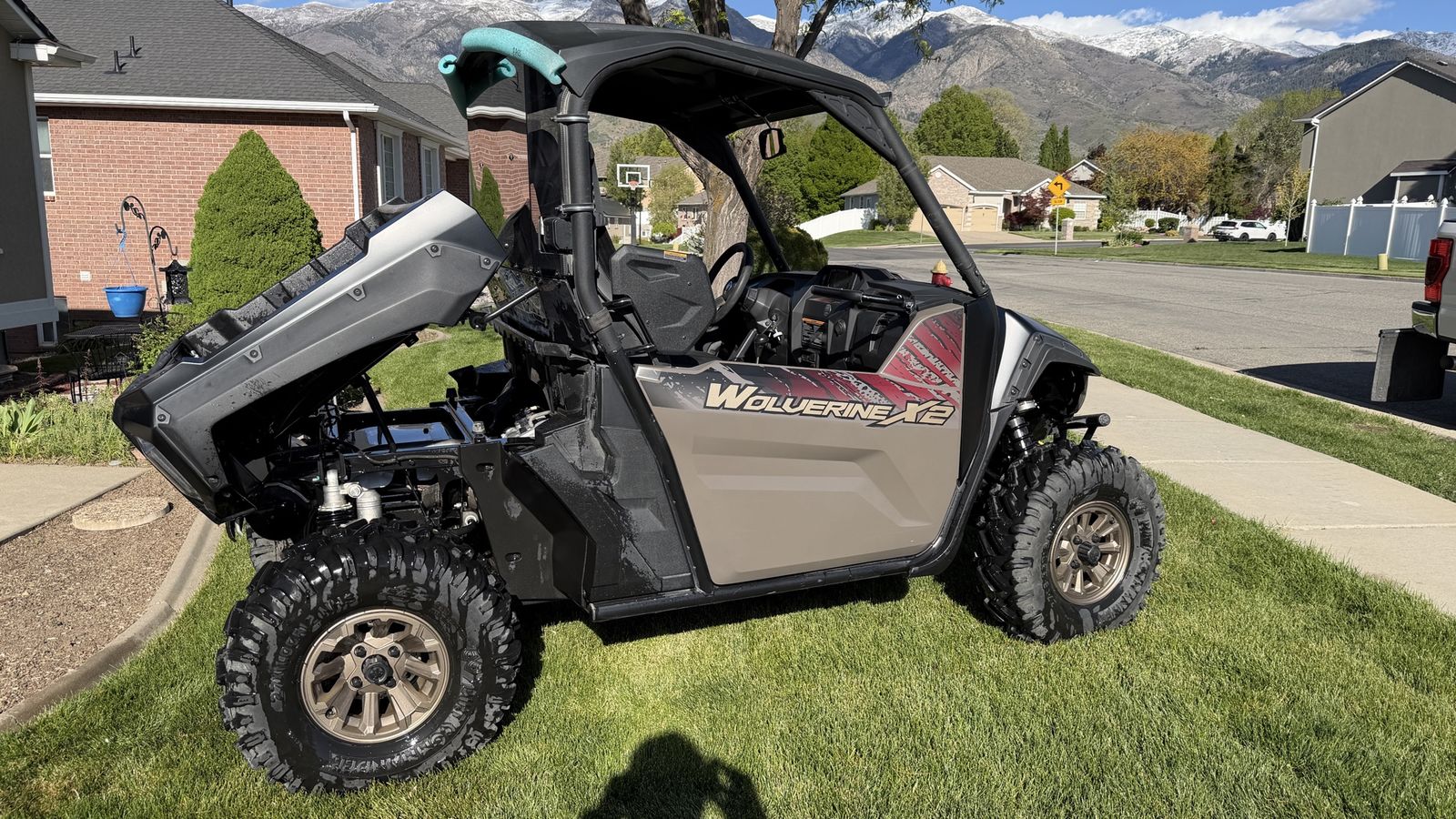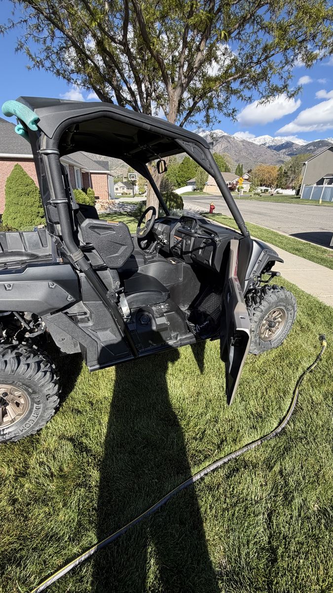 2024 Yamaha Wolverine side by side, 592 miles, very good condition, winch, EPS, rear Yamaha window, LED lights, turtle mode, all service performed per manual, ready to ride. Save thousand off new. Dump bed, 600 lb capacity, tows 2000 lbs. Purchased new in February 2025. My wife and I love this but wanted to take grandkids with us so we got a 4 seater Yamaha. Thing drives like a mountain goat. Yamaha reliability and durability. Also comes with full cover. Full asking price comes with brand new Dirt Commander 2 tires. ($600.00 value)