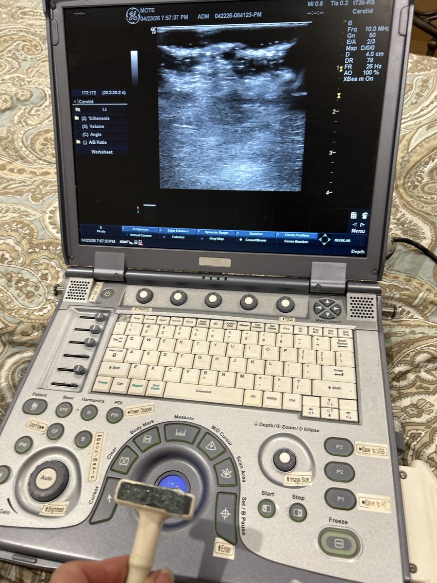VenmoI purchased this from a hospital auction. It works well I just don’t need it. Comes with a linear probe T739-rs. Needs to be plugged in. Battery is available on eBay