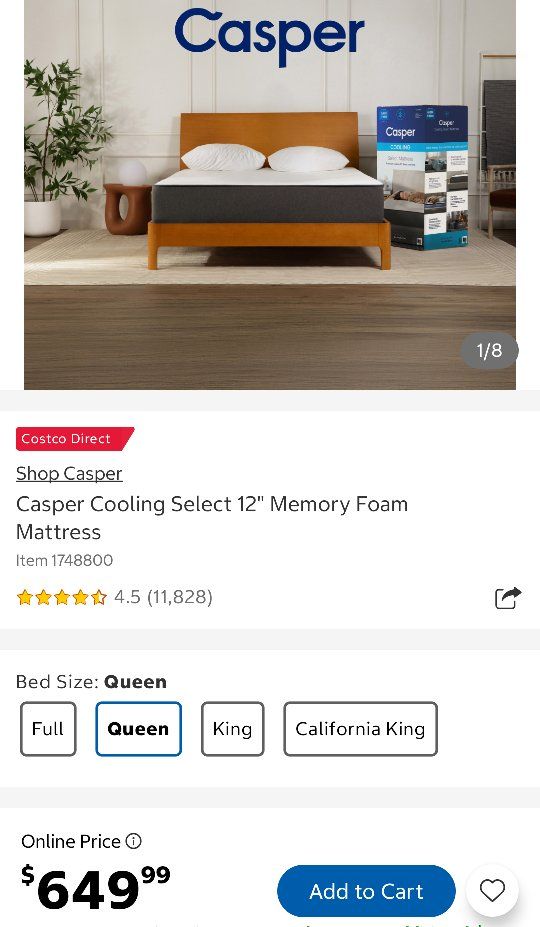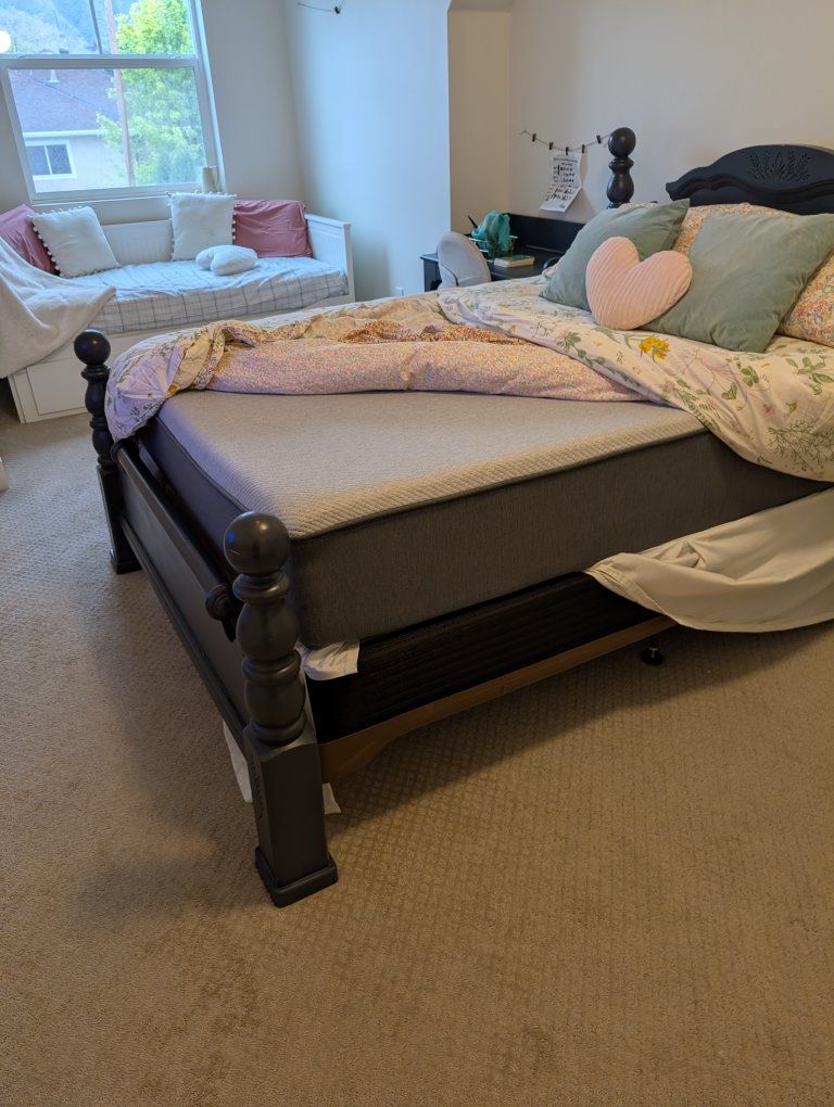 VenmoGreat wooden frame Queen Size bed. Comes with box spring and 12" Casper Memory Foam Mattress. This has been lightly used in a spare room. Mattress is AMAZING. Worth every penny. Includes sheets, down comforter, duvet, etc.