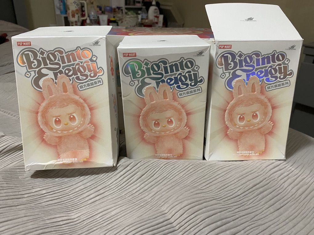 VenmoLabubu pop mart . Non Authentic Labubu V3(not real) 1 whole box sealed, 3 opened. DISCLAIMER. Color me be wrong or off. $50 for all take it.