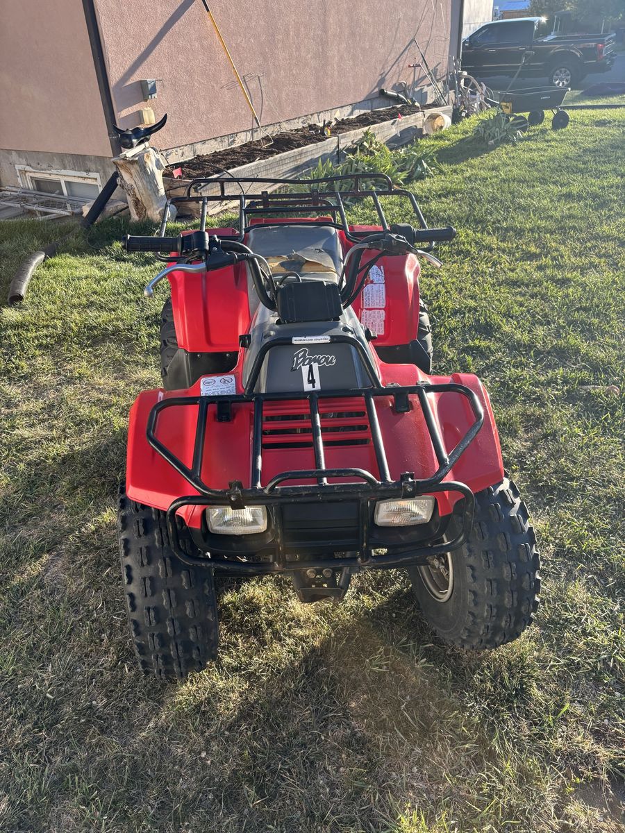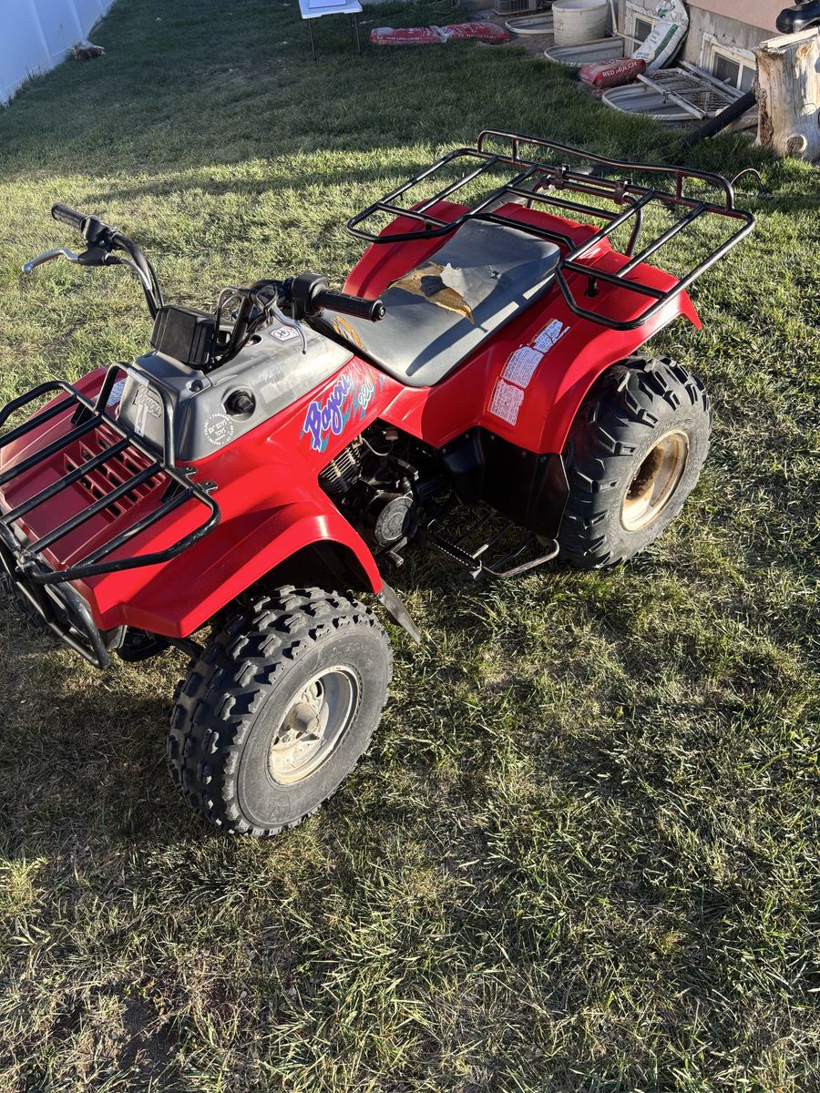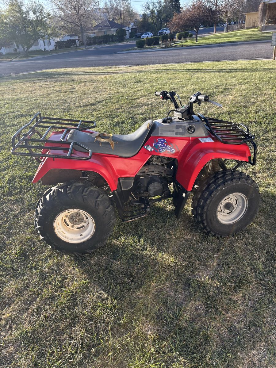 1996 Kawasaki KLF220 has brand new tires front and back with less than 20 miles on them. One of the back tires got mounted on the rim backwards but it does not affect the wheeler at all. Easy to start and been a great unit for me. Seat has a crack and the plastics are in great shape! title in hand $1,000 obo offer (435) 851-5203