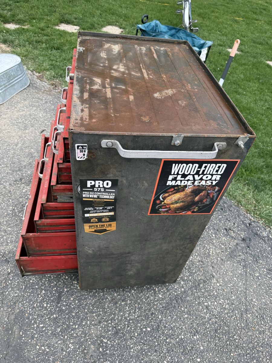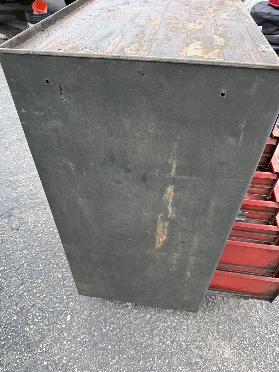 LUMIDOR Vintage Rolling Tool Chest / Box 38” High 18” Deep 26” Wide 9 Drawers With Wheels Used Works Good See Pics