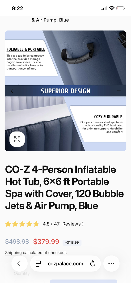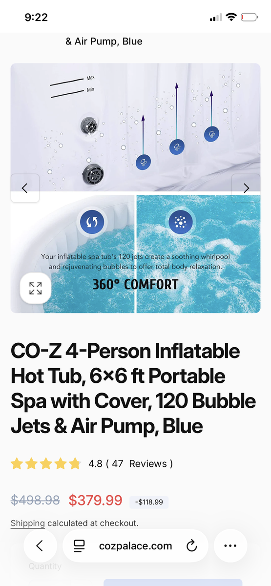 This is an inflatable 6x6 hot tub. Works great, holds the heat. Used only 1 season last year. Must sell. Comes with chemicals, cover, extra filters and instruction manual. This is a super buy! Hard to part with. Best offer