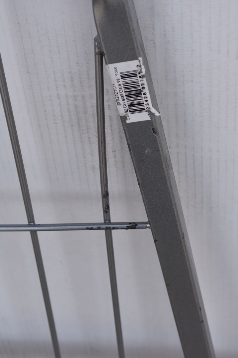 Gate measures 52" x 42" with hinge adding 1 13/16", total width 53 13/16", making it ideal for small stalls, barn openings, or aisleways