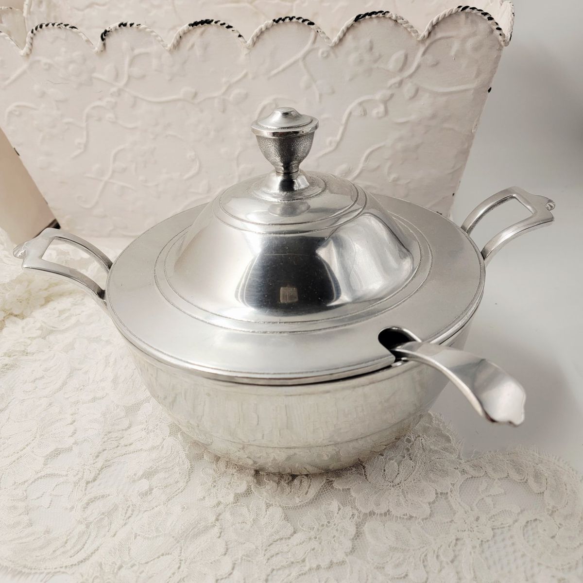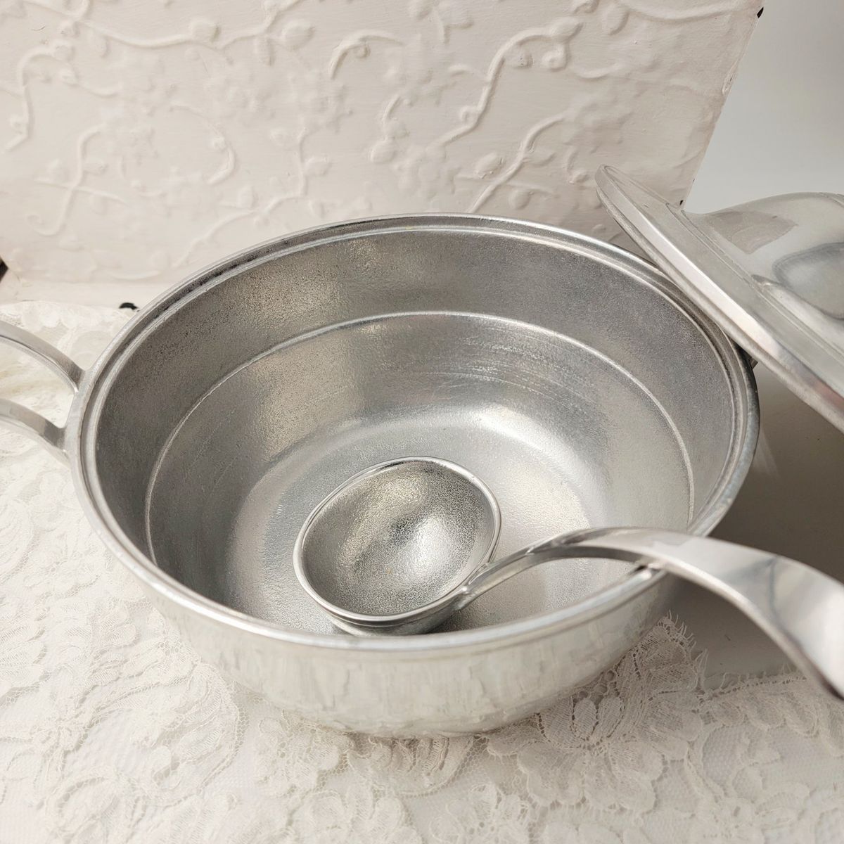 WILTON Armetale Metal/Pewter Ploug Tavern Soup Tureen w/ Lid and Ladle. 2.5 Qt. Shiny surface. Vintage 1970's. Excellent Condition. Used for display only.