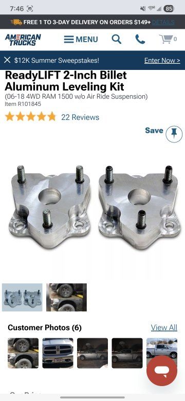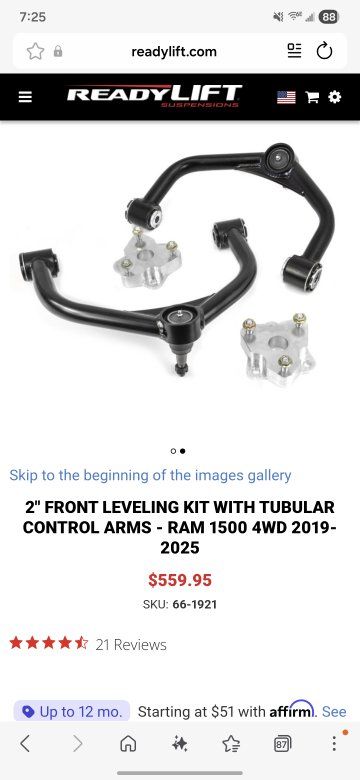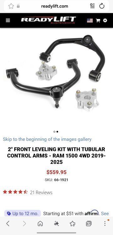 Selling a 2" ReadyLift leveling kit for a Ram 1500. I bought them as a set with upper control arms but decided to buy leveling struts and use the upper control arms with the struts. So I have these as extra that I won't use. They are brand new, never installed. According to the internet, the 4th Gen (2009-2018) and 5th Gen (2019-2026) can use the same leveling kit. I added a picture of the kit that I ordered with the upper control arms showing it with the 2019 and up years. Online, I found the leveling kit by itself for $250. This showed from 2006-2018. This is only for the leveling pucks, NOT with the upper control arms.