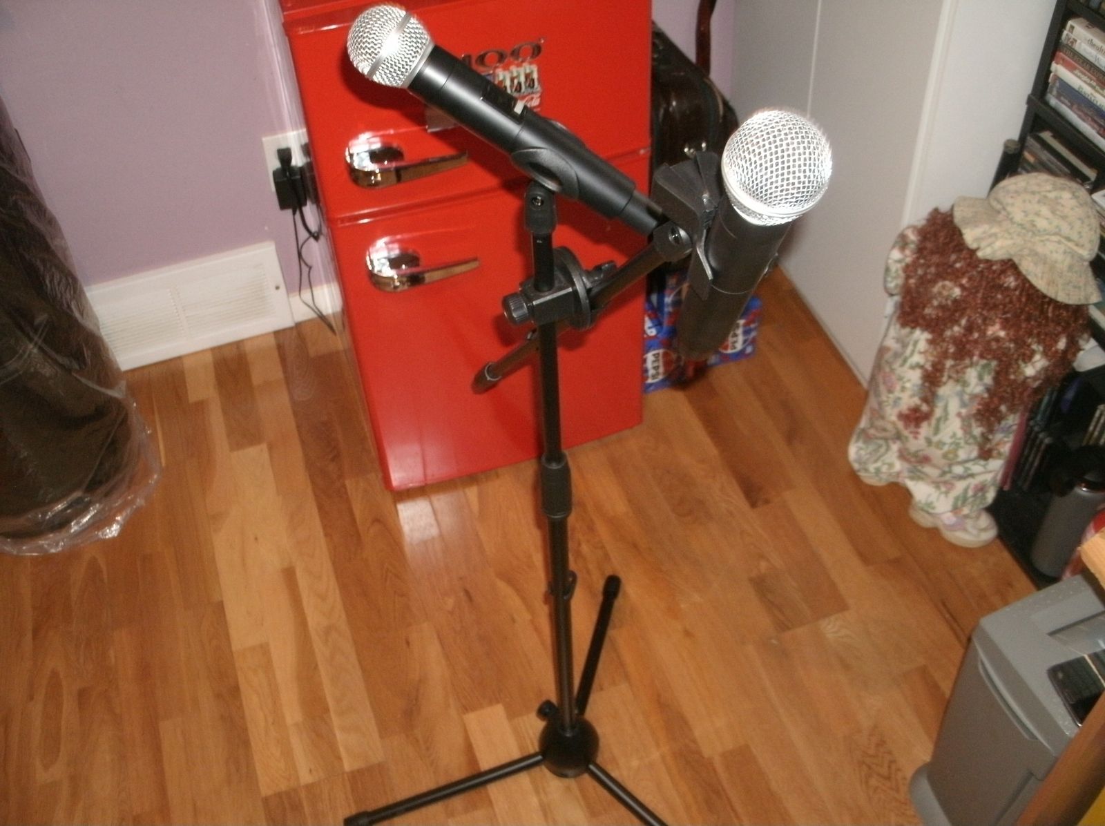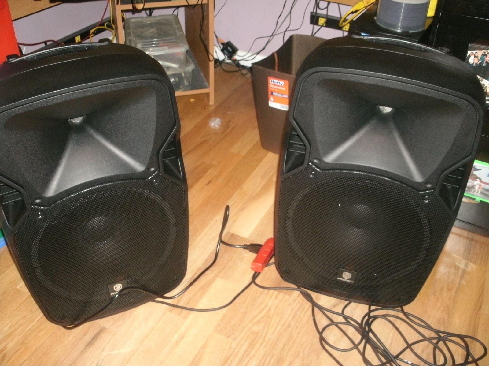 This Party Pack Portable System in cludes Party 12 duel 12 inch powered speakers 500 watts with stands and a wired microphone plus two new wireless microphones with a new two mic stand comes with all needed cables fully tested and ready to go for parties and singers of all ages.