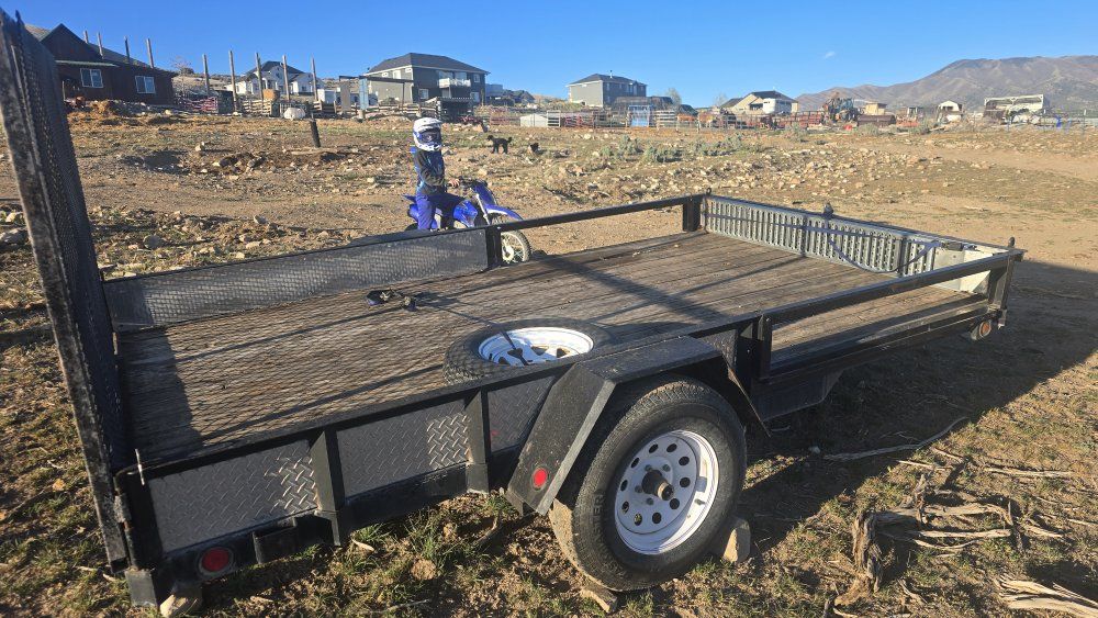 utility trailer 7x12ft bumper pull load from the sides or back. ramp and spair tire. 3500lb axis. 1700 or best offer.