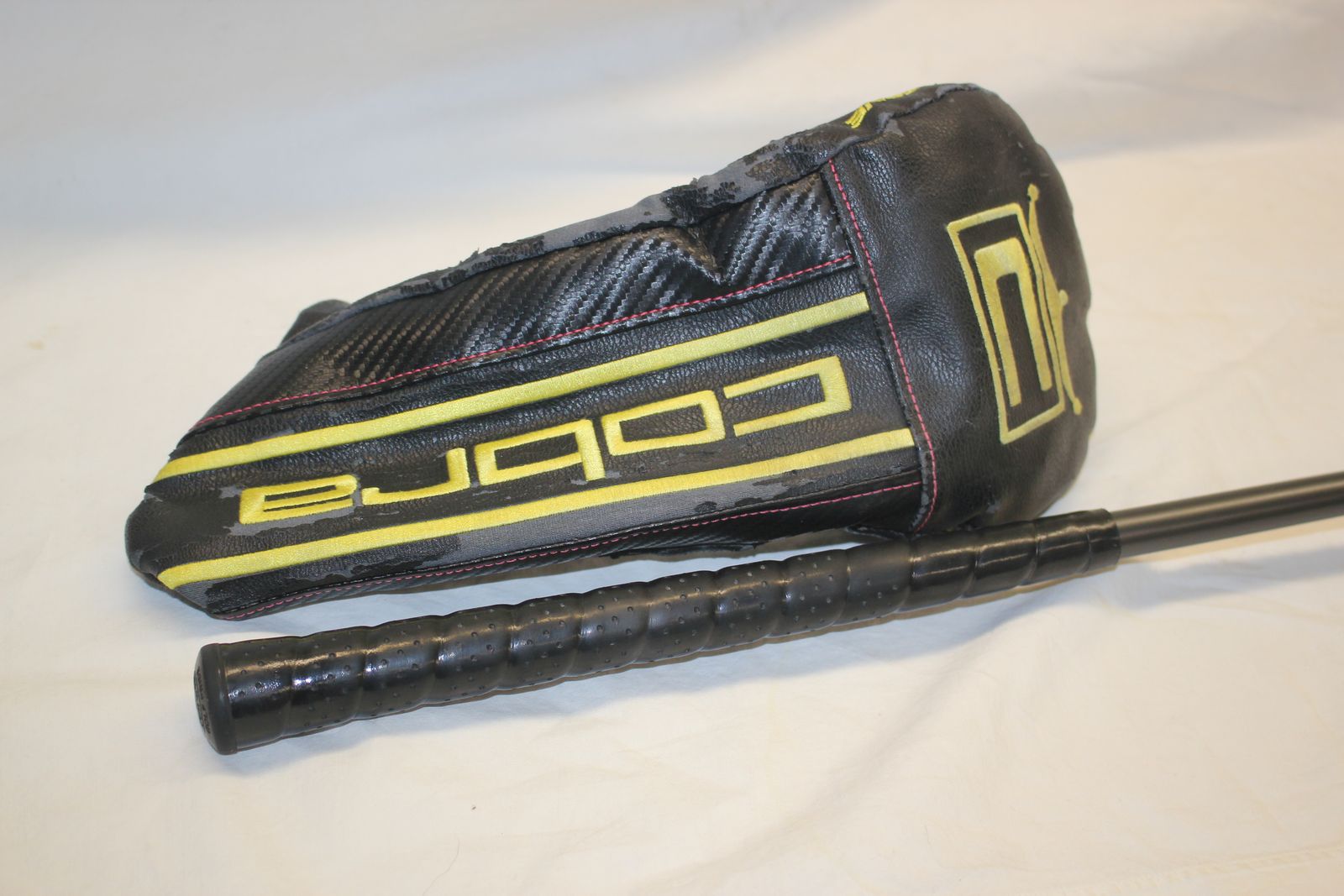 Cobra Speedzone King SZ 9-degree driver with HZRDS Smoke Yellow stiff flex (6.0) mid-launch low-spin counterbalanced shaft that is stable yet smooth for a factory shaft that is standard length. Condition is very good for a driver that is a few years old with very few blemishes. Golf Pride Tour Wrap mid-size gripf and factory headcover (usable but seen better days). Cobra drivers are very solid, boring ball flight and long. Cash only, offers considered.