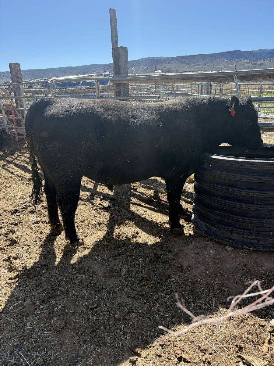 Yearling black angus bull confidence bred. He has been vet checked, ready to go. Any questions, don't hesitate to call. Ask for Jack.