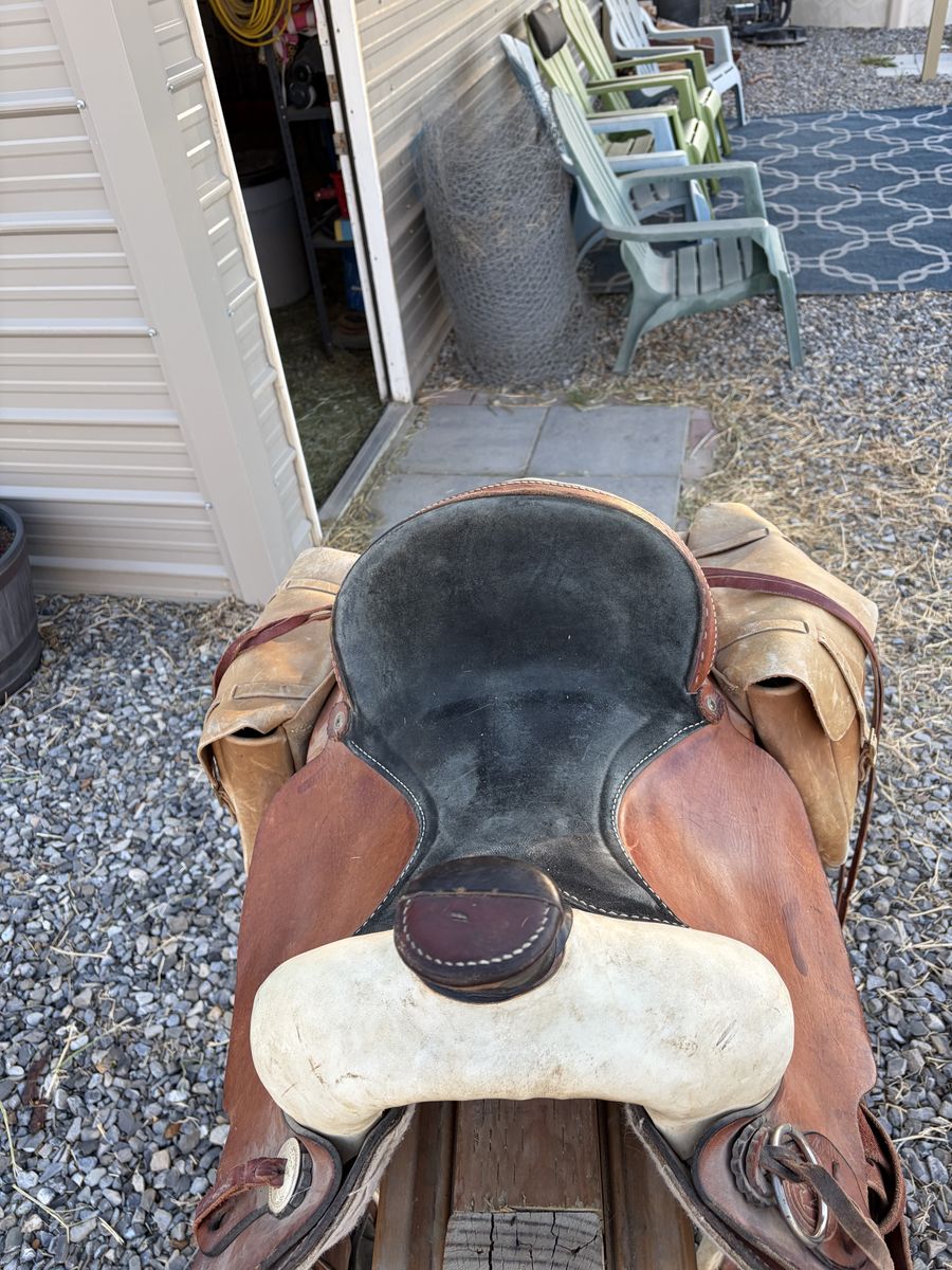 VenmoCircle M 16 inch saddle with attached saddle bags. Good condition. 7 inch gullet. Great trail saddle. $250