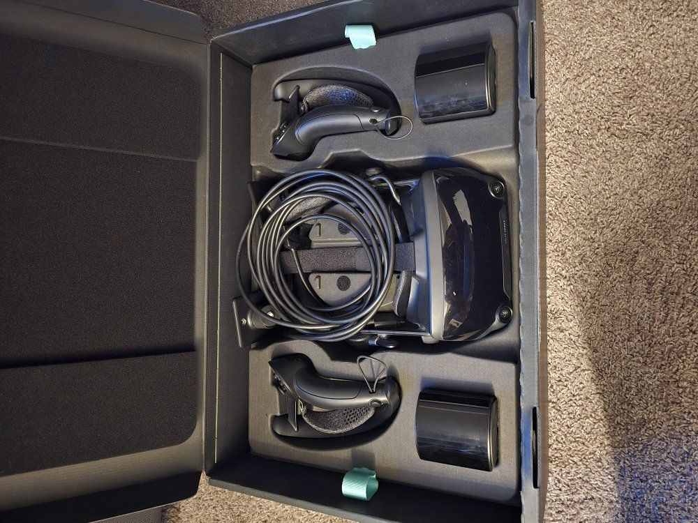 VenmoValve Index headset with base stations (2) and index controllers (2). Includes all necessary cables and many extras for various configurations, many still in original packaging because I didn't need to use them.