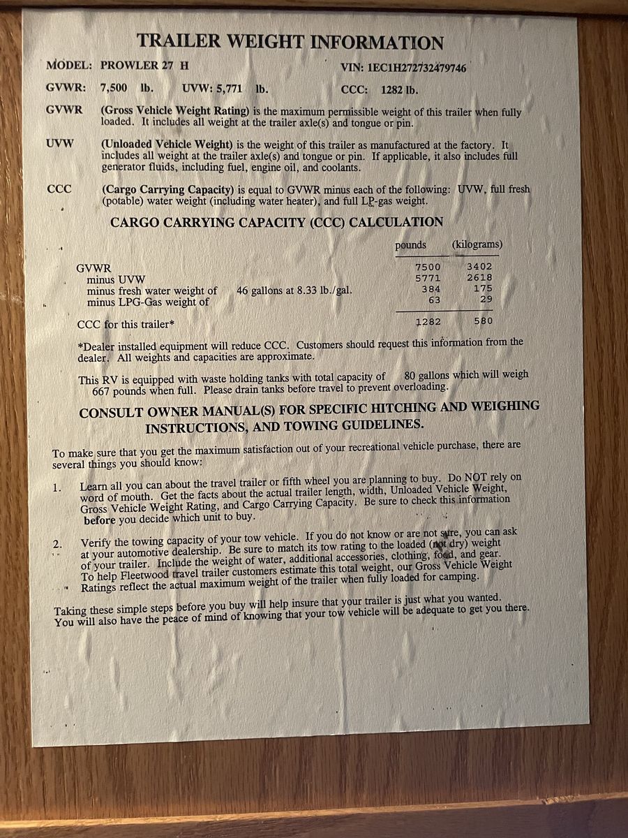 VenmoI have my 2003 27H Prowler by Fleetwood RV for sale. This trailer pulls great, in good shape, all appliances work as they should, huge 12’ slide, 18’ awning, tires have plenty of tread, spare, 46 gallon water tank, 6 gallon hot water heater with electric ignition, two 7.5 gallon propane tanks, Wave Catalyst safety heater, no water leaks or damage. Clean title in hand. Let me know if you have any questions. Thank you