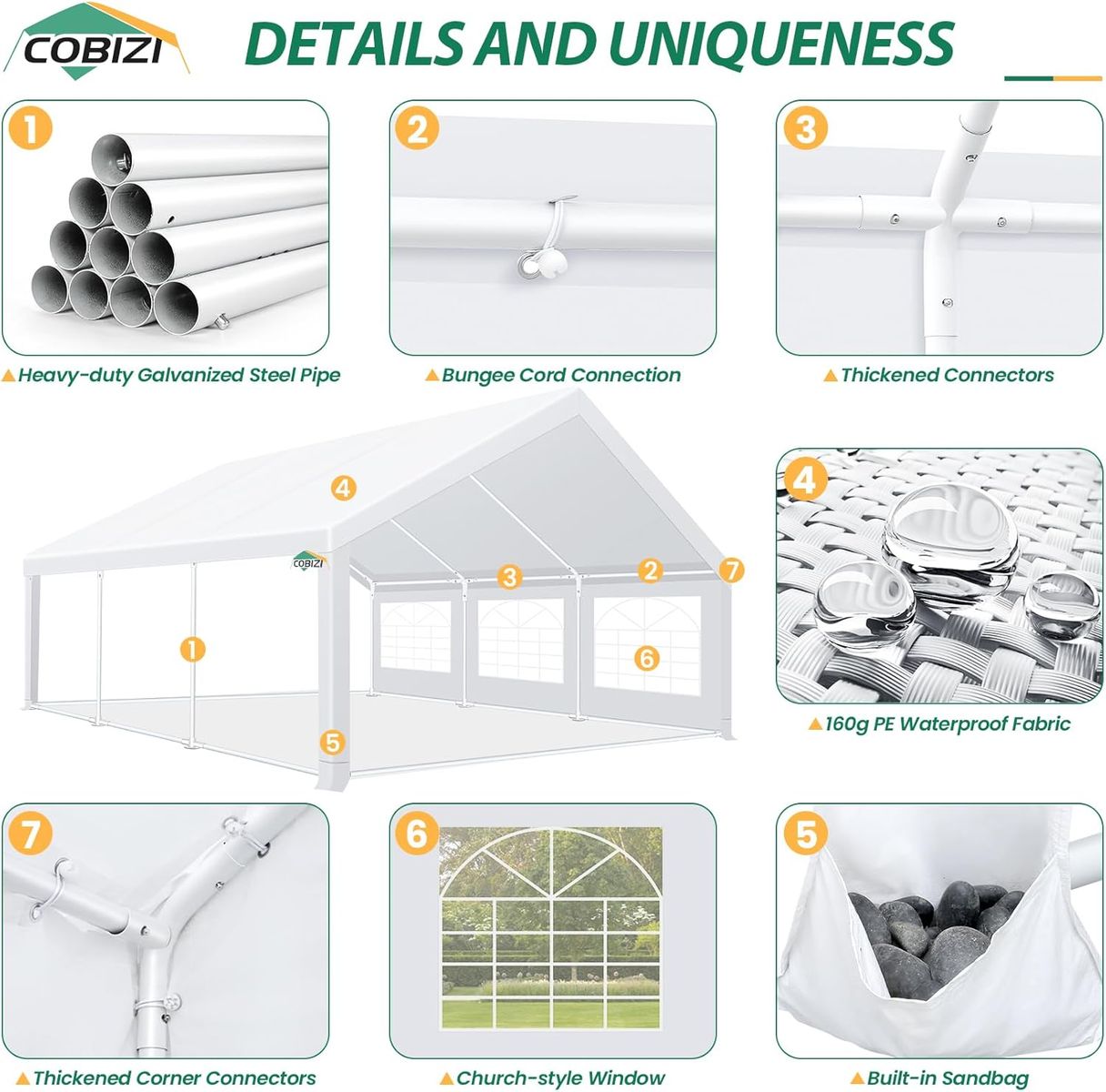 This is a large commercial-style event tent, not a lightweight pop-up. Perfect for weddings, large gatherings, backyard events, or business use.