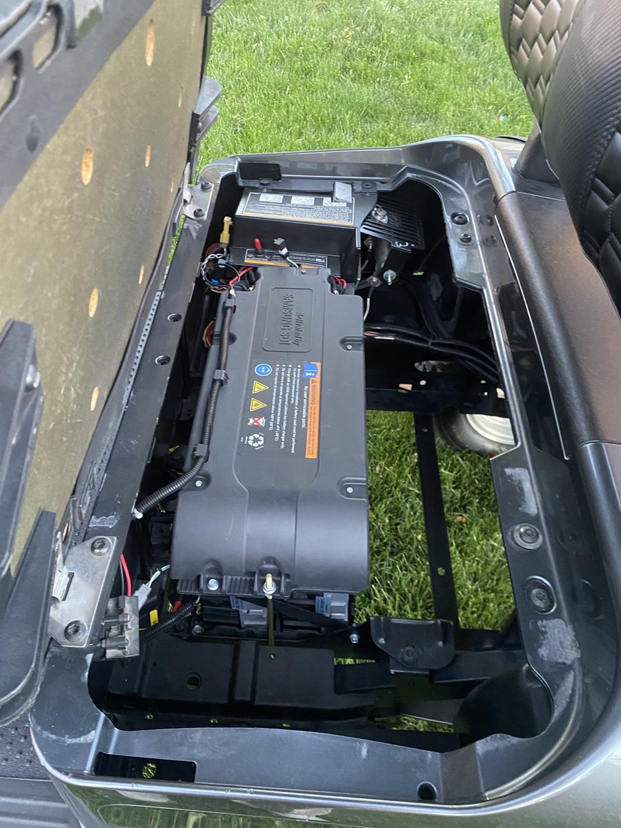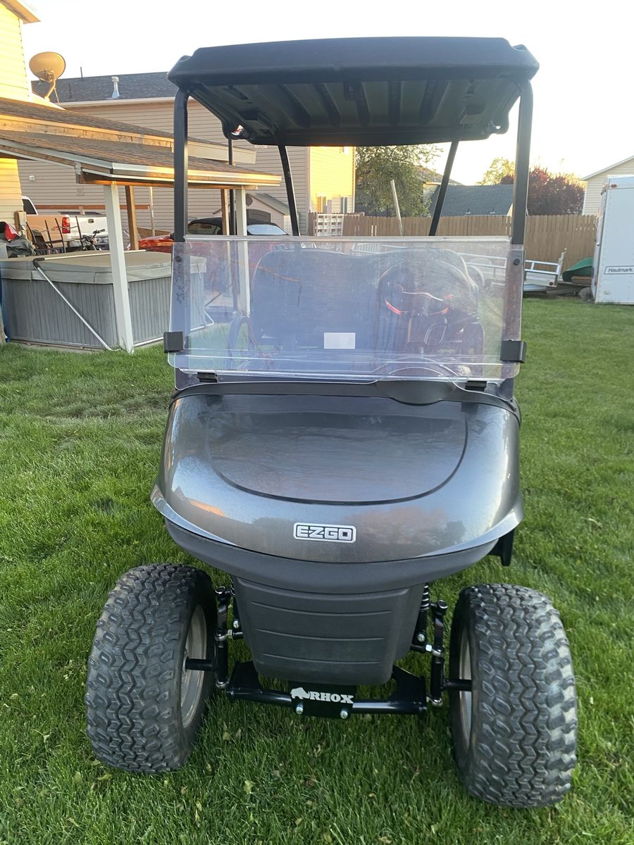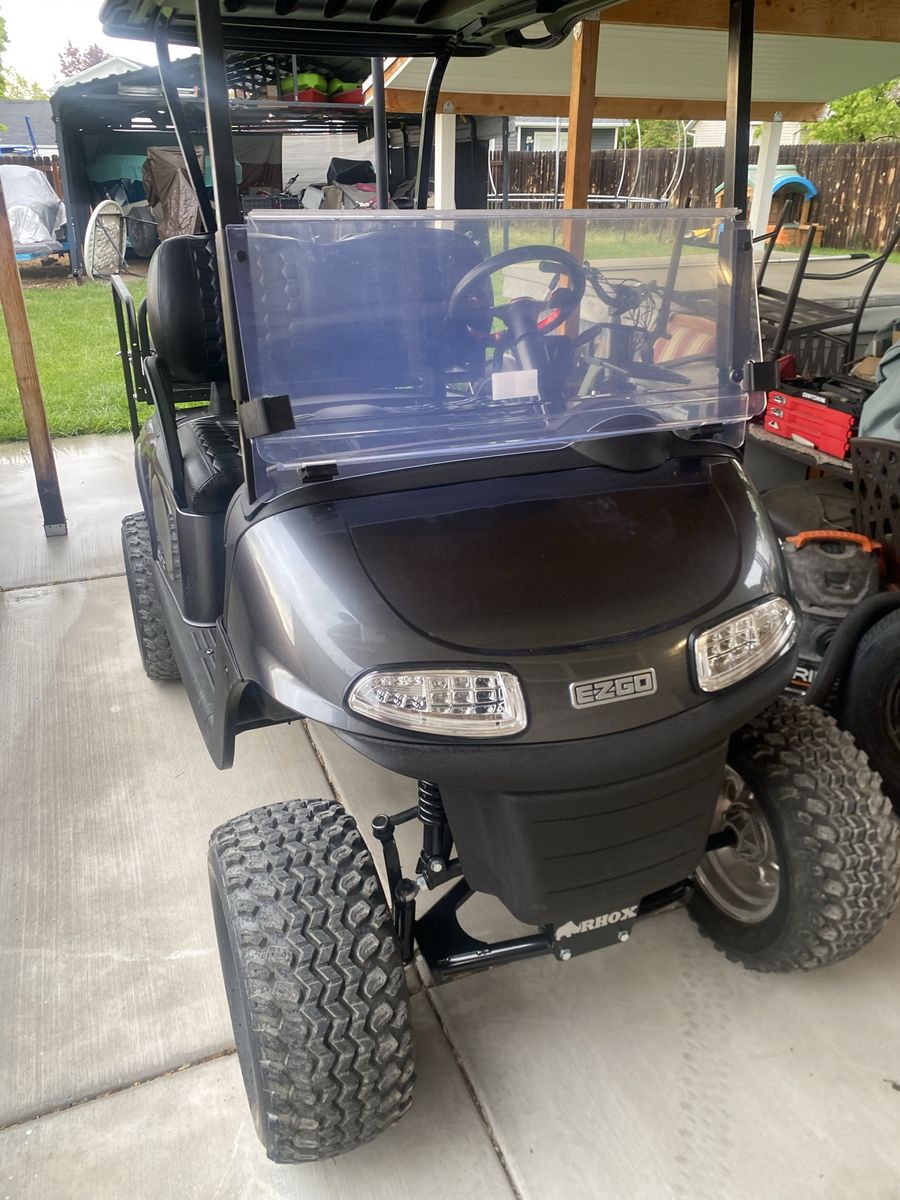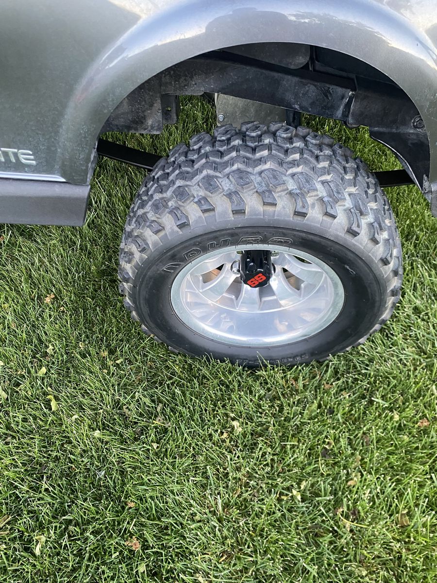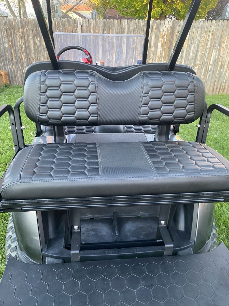 ️ New premium seats & covers ️ New 5” RHOX lift kit ️ 23X10.5 R 12 tires ️ 12” custom wheels w/47mm offset. ️ New EZGO rear folding seat ️ Black roof (ditched the beige for a better look) ️ Folding windshield ️ Heavy-duty rear springs (handles passengers with ease) ️ Custom steering wheel ️ MadJax street-legal light kit (horn, blinkers, hazards) ️ Factory Samsung lithium battery (still under warranty) ️ Fast charger included ️ USB ports in dash ️ Unlocked ECU — runs 26 MPH