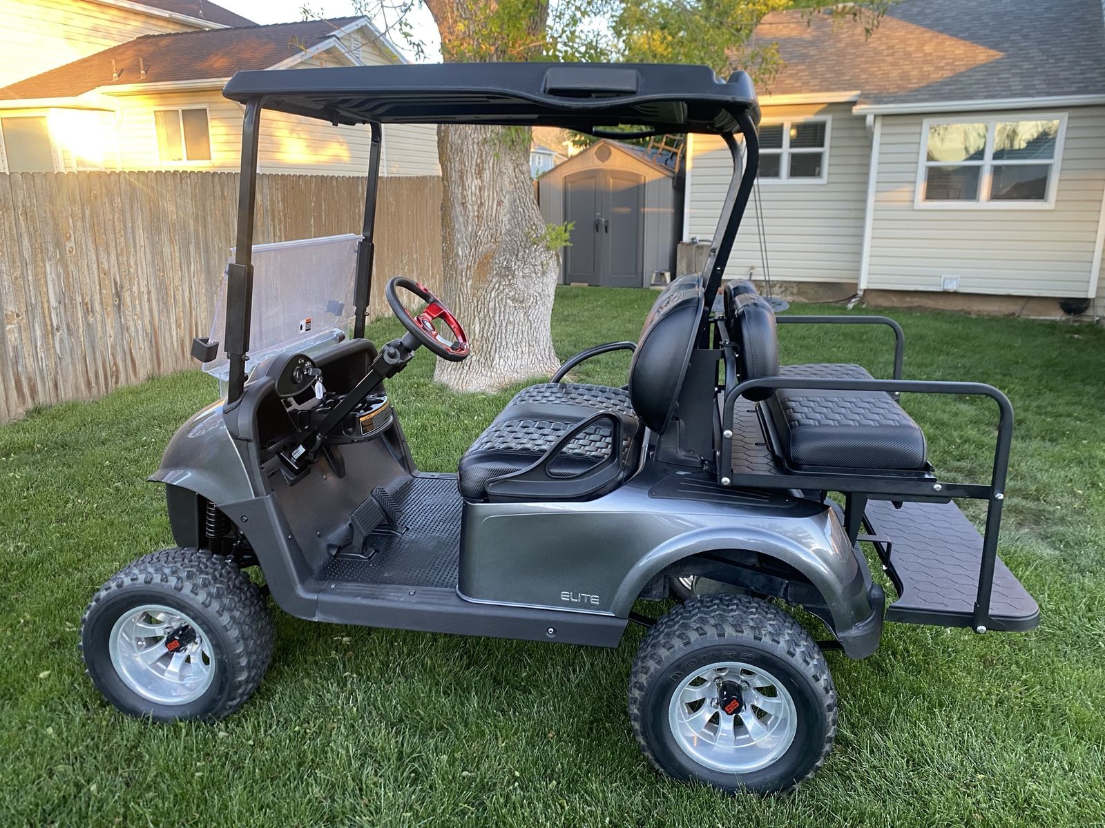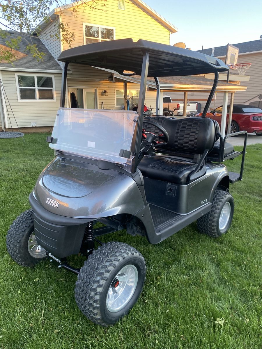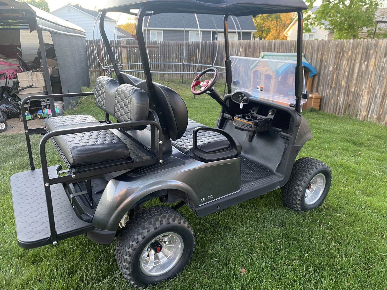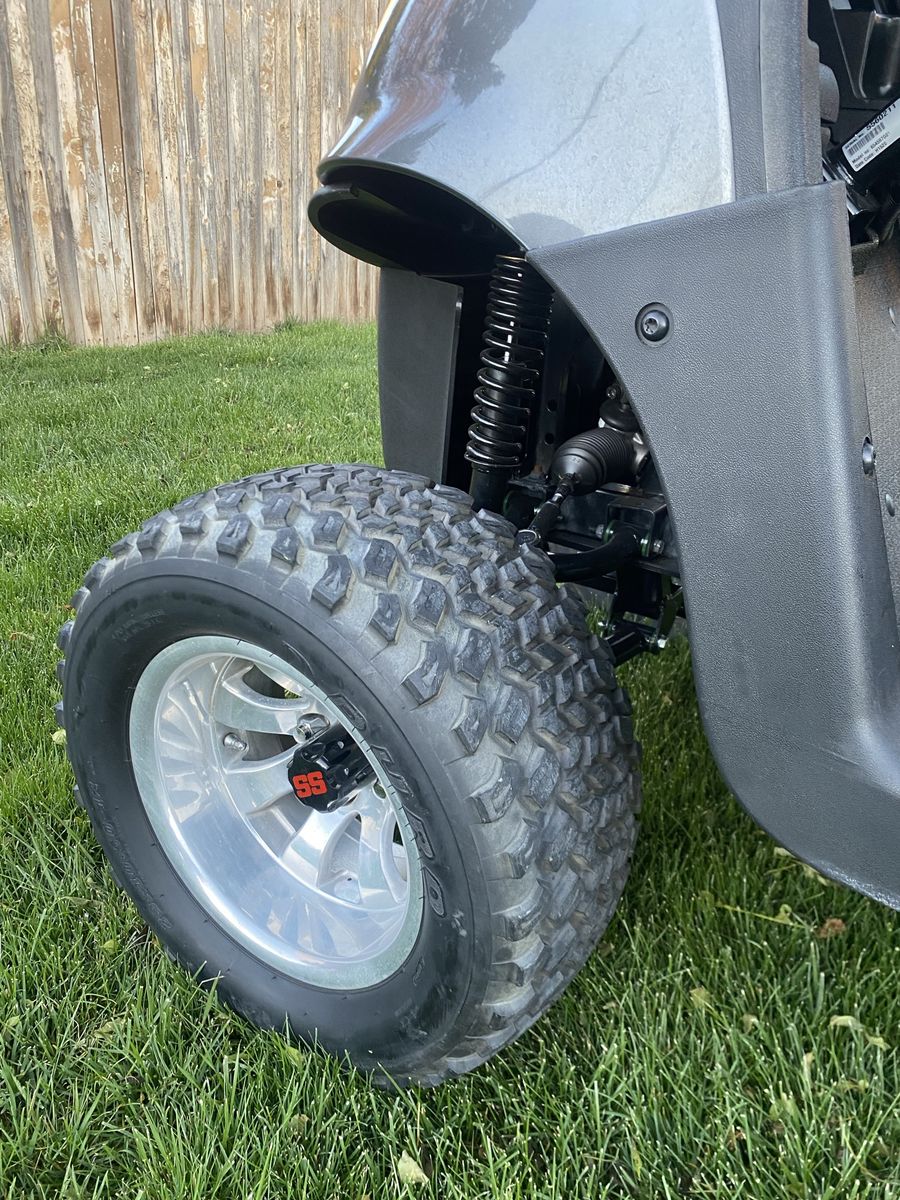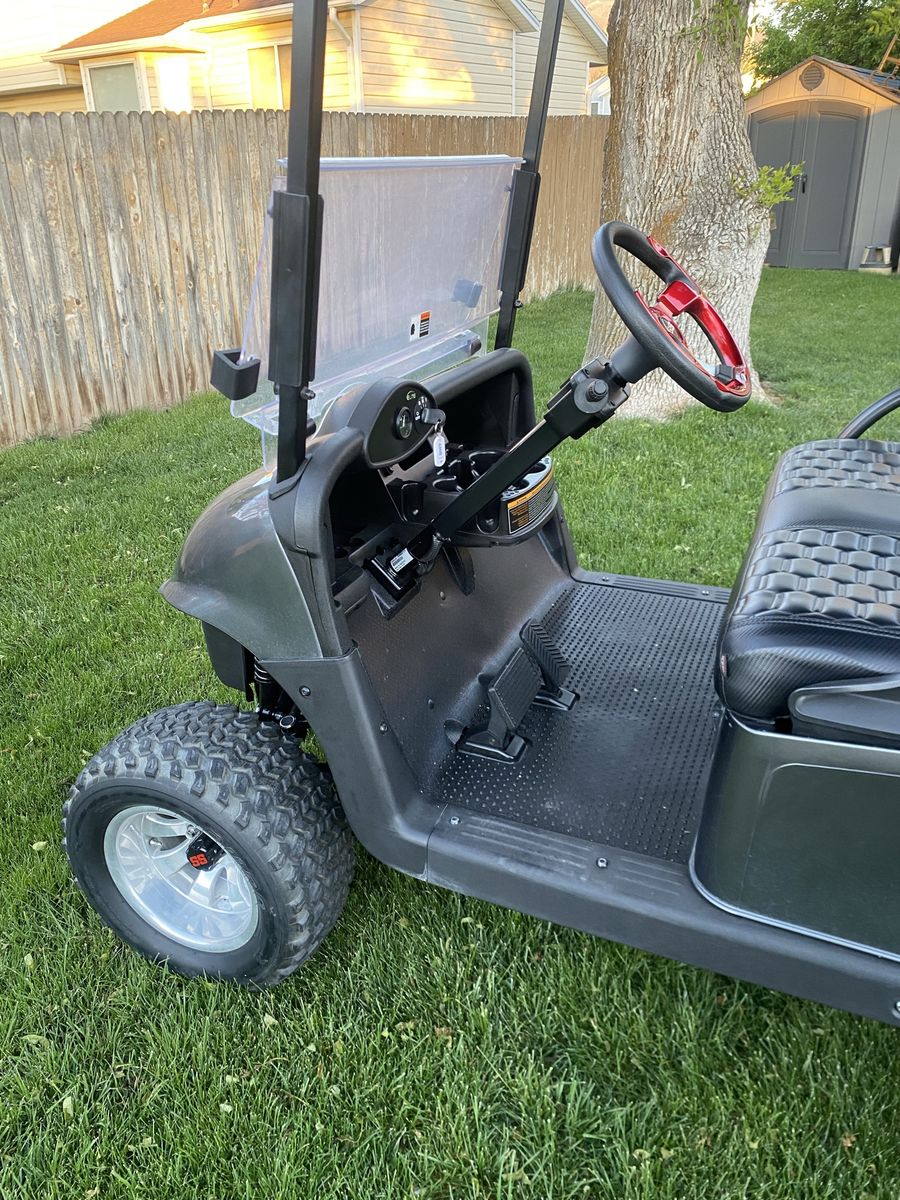 ️ New premium seats & covers ️ New 5” RHOX lift kit ️ 23X10.5 R 12 tires ️ 12” custom wheels w/47mm offset. ️ New EZGO rear folding seat ️ Black roof (ditched the beige for a better look) ️ Folding windshield ️ Heavy-duty rear springs (handles passengers with ease) ️ Custom steering wheel ️ MadJax street-legal light kit (horn, blinkers, hazards) ️ Factory Samsung lithium battery (still under warranty) ️ Fast charger included ️ USB ports in dash ️ Unlocked ECU — runs 26 MPH
