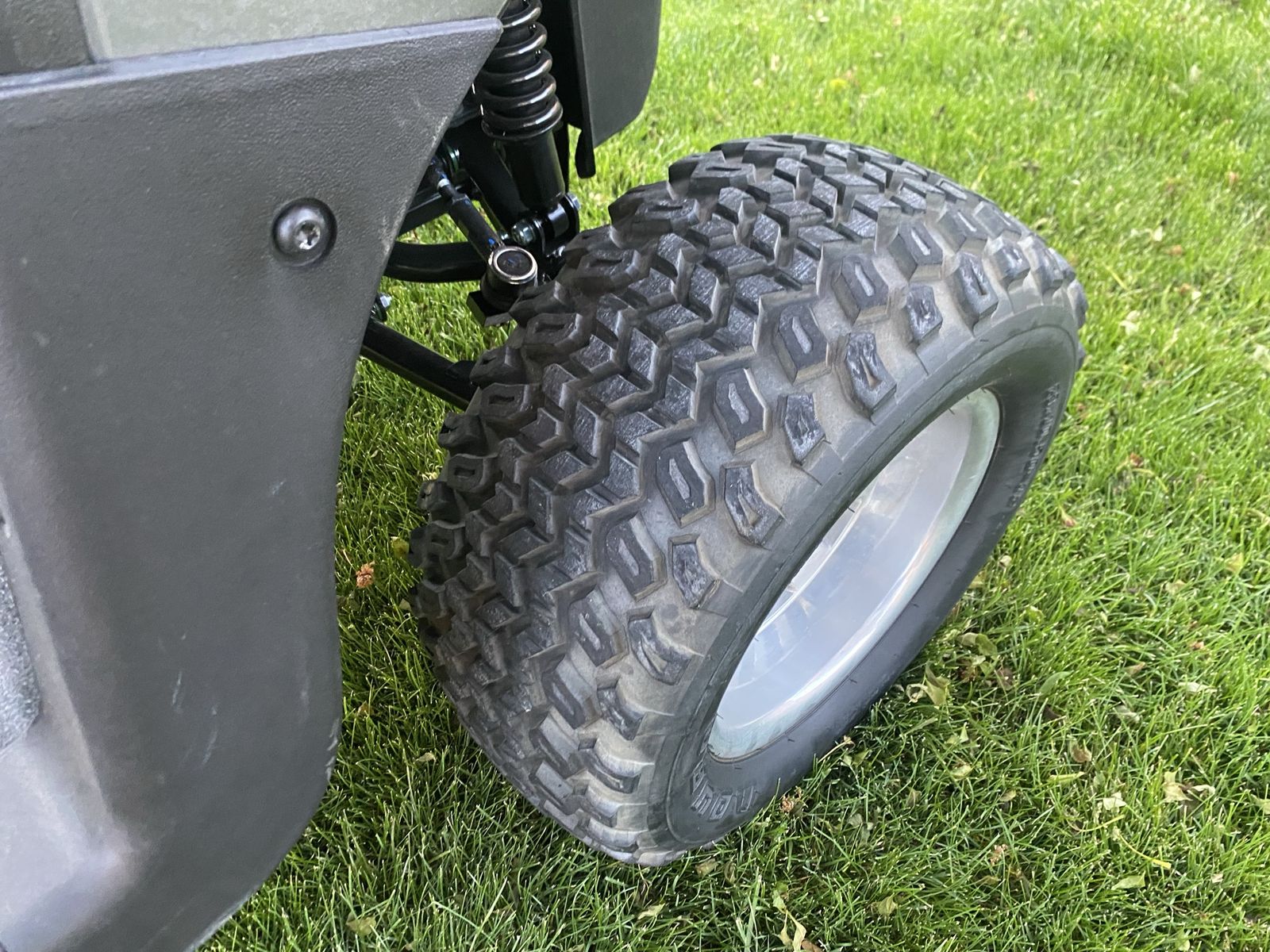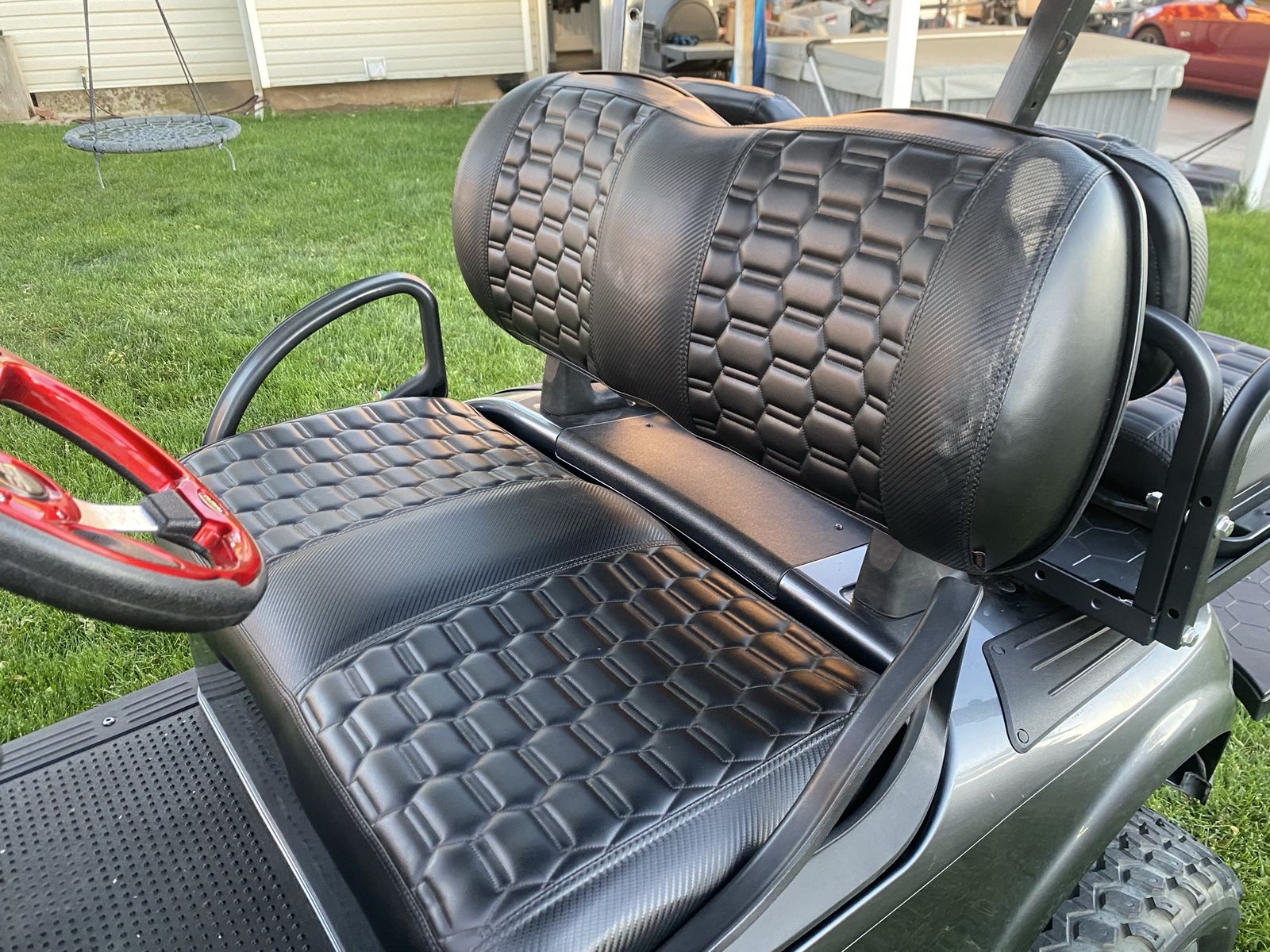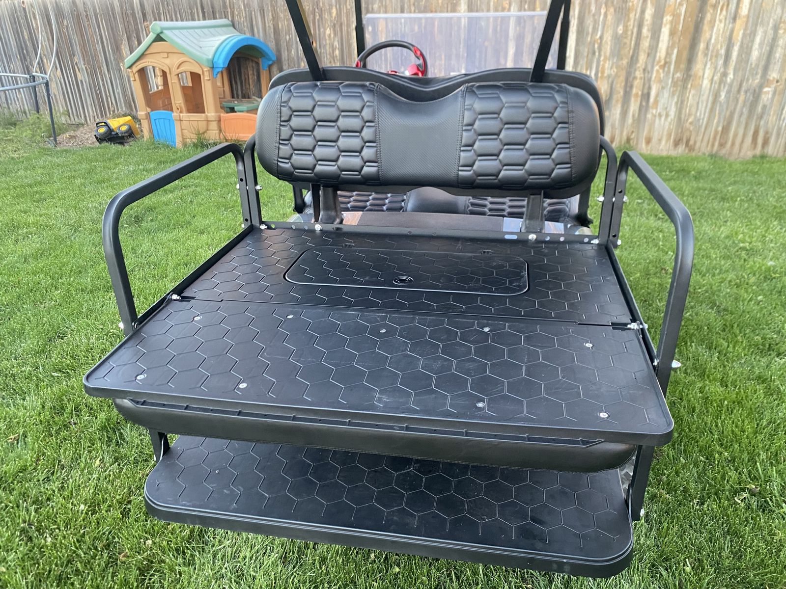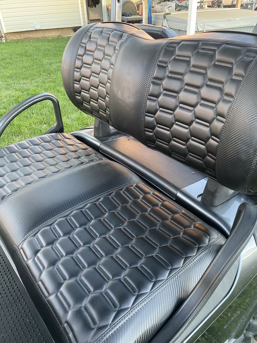 ️ New premium seats & covers ️ New 5” RHOX lift kit ️ 23X10.5 R 12 tires ️ 12” custom wheels w/47mm offset. ️ New EZGO rear folding seat ️ Black roof (ditched the beige for a better look) ️ Folding windshield ️ Heavy-duty rear springs (handles passengers with ease) ️ Custom steering wheel ️ MadJax street-legal light kit (horn, blinkers, hazards) ️ Factory Samsung lithium battery (still under warranty) ️ Fast charger included ️ USB ports in dash ️ Unlocked ECU — runs 26 MPH
